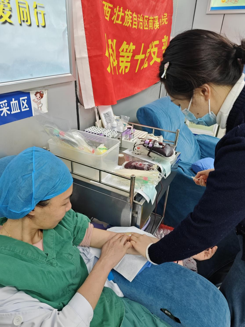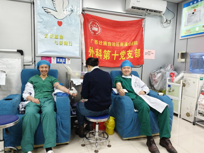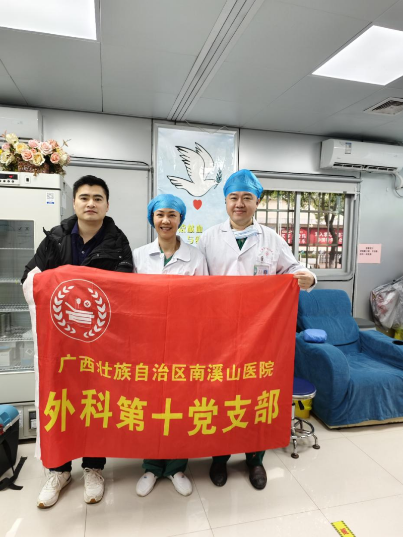今日,广西壮族自治区南溪山医院外科第十党支部积极响应医院献血号召,麻醉科副主任赵昱博士亲自带队,携手科室副护士长秦章兰、主治医师唐贤涛,一同前往献血屋,参与无偿献血活动,为社会贡献自己的一份力量。