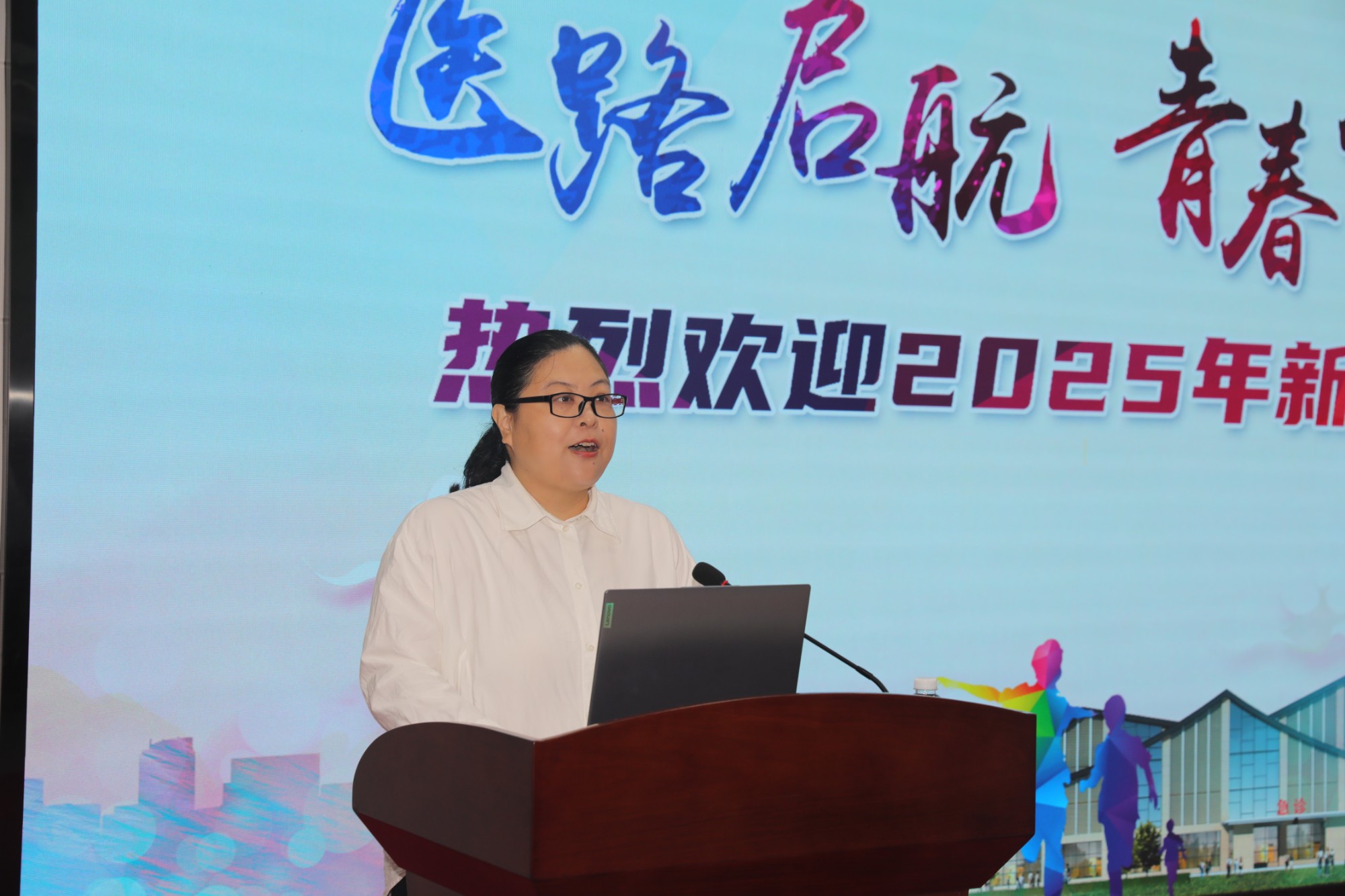 迎新仪式在庄严的氛围中拉开序幕。医院党委副书记、院长李朝旭代表医院全体职工热烈欢迎新成员的加入。他深情回顾了医院扎根桂北、服务人民的奋斗历程,强调了医院作为区域医疗中心所肩负的使命。李院长寄语新职工,要将个人理想融入医院发展和健康广西建设的大局中,勉励大家传承“厚德精医”的院训精神,在临床实践、科研创新、服务患者中锤炼过硬本领,勇担时代重任,成为有理想、有本领、有担当的新时代南医人。