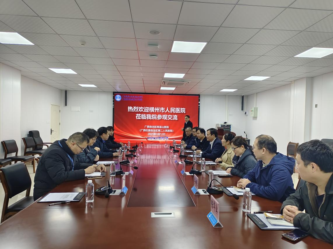 2025年3月12日上午,横州市人民医院副院长李福灯一行9人到自治区南溪山医院参观交流,南溪山医院副院长胡长付及医务部、质管办、信息科负责人陪同参观。