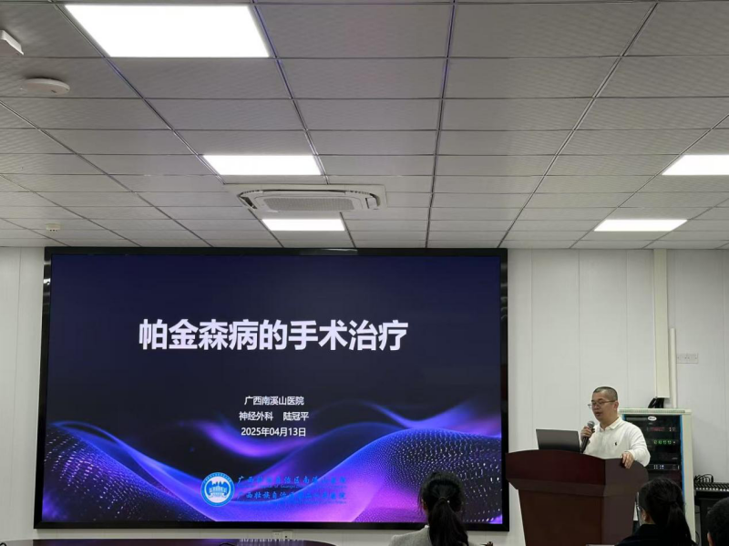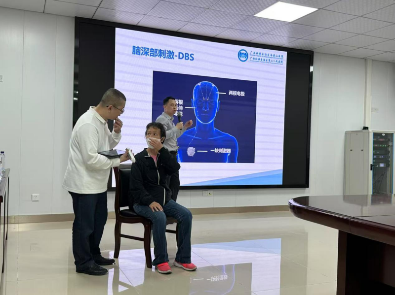 神经外科陆冠平主任则介绍了南溪山医院神经外科在帕金森手术治疗方面的先进技术和丰富经验。他提到,脑深部电刺激术(DBS)是南溪山医院神经外科治疗帕金森病的核心技术。该手术通过植入脑内的电极发放电刺激信号,调节脑内神经递质的平衡,有效改善帕金森的震颤、僵直、运动迟缓等症状。目前,南溪山医院神经外科已成功开展30余例DBS手术,术后患者症状得到了很大的改善。