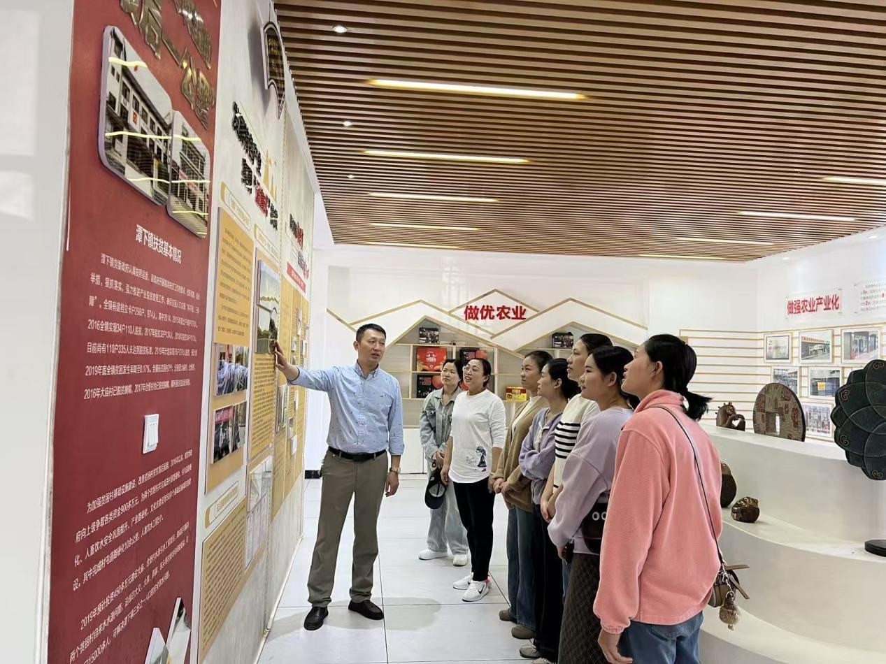 义诊结束后,全体党员前往潭下镇乡村振兴示范中心参观学习。在讲解员引导下,大家依次参观产业、人才、文化、生态、组织振兴等主题展区,通过图文、数据和实物,深入了解潭下镇在党建引领下发展特色农业、改善人居环境、培育文明乡风、带动农民增收的生动实践。特别是“党支部+合作社+农户”模式成功打造特色农产品品牌、壮大集体经济的案例,令党员们深受触动。大家表示,乡村振兴的实践成果为医院高质量发展与服务效能提升提供了宝贵借鉴。