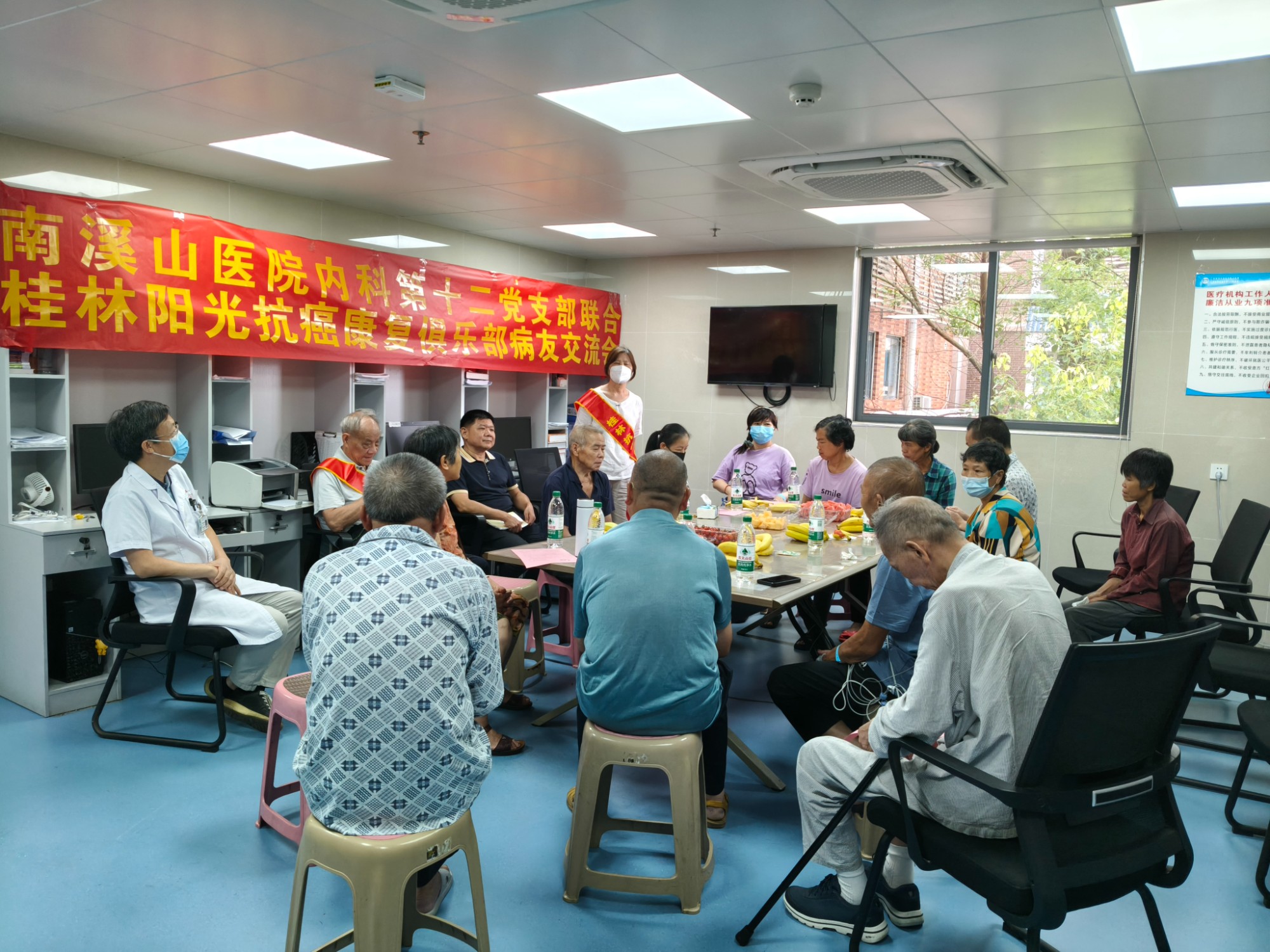 7月2日下午,广西壮族自治区南溪山医院内科第十二党支部联合桂林市阳光抗癌俱乐部,在肿瘤内科二病区举办了一场温暖而励志的“科学抗癌 携手同行”病友交流会。活动通过专家科普、抗癌经验分享和互动交流,为患者及家属传递科学治疗理念,增强战胜疾病的信心。