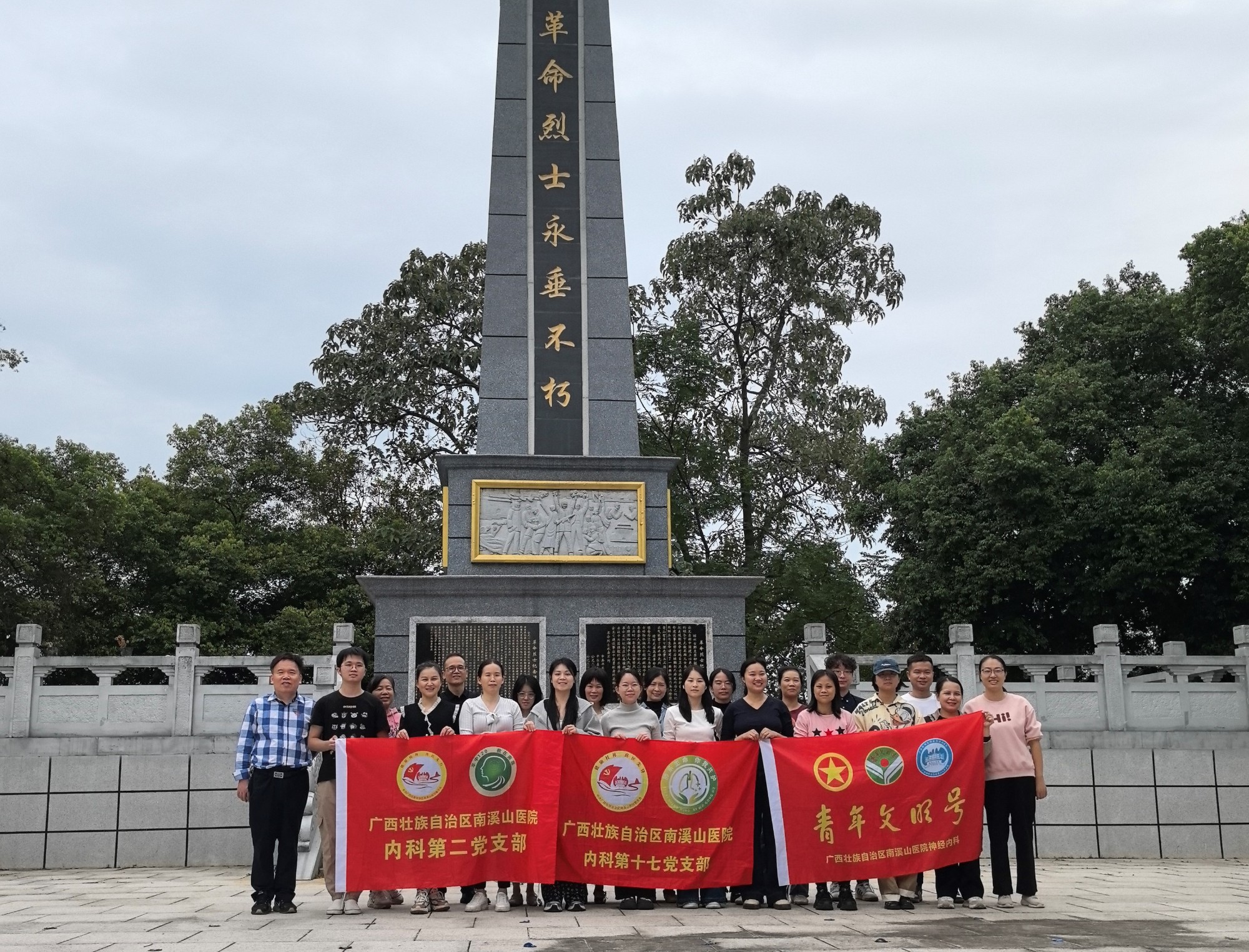 义诊结束后,南溪山医院神经内科团队前往平乐县烈士纪念碑开展红色教育。在缅怀先烈的过程中,医护人员重温初心使命,进一步坚定了守护人民健康的决心。大家纷纷表示,将以更饱满的热情投身基层健康服务,用实际行动践行医者担当。