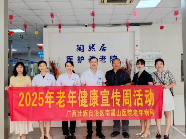 6月25日,为做好2025年老年健康宣传周活动,广西壮族自治区南溪山医院老年病科、安宁疗护中心组织科室工作人员到桂林市七星区陶然居医护养老院开展“银龄健康,从心启航”主题活动。