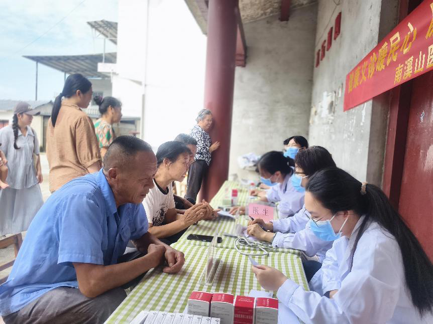 活动现场,南溪山医院急诊重症第一党支部的医务人员结合农村实际,组织开展多发病、常见病等现场诊疗,免费为村民量血压、测血糖,医务人员认真问诊、检查身体,解答村民提出的问题,提供健康指导和合理用药指导,并为村民免费发放常用药品。医务人员为群众耐心细致地讲解医疗保健、健康饮食等科普知识以及目前国家医保政策,引导村民加强自身健康管理,树立科学、健康、和谐的生活理念。