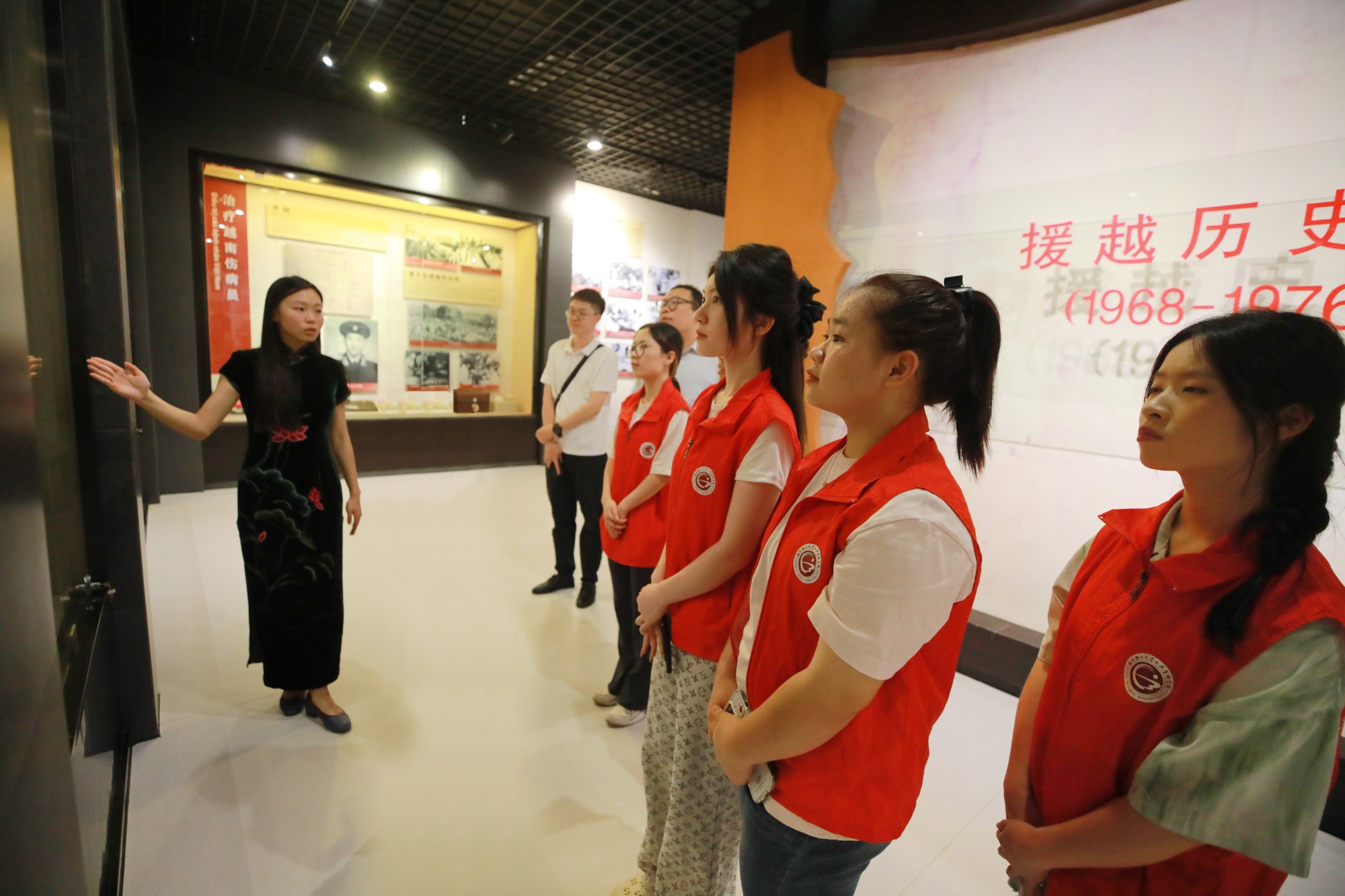 南溪山医院作为中越人民友谊的见证,也是两国卫生健康事业合作的典范,南溪山医院在赓续中越友谊历史中承载着越南抗美战争时期与中国友谊的历史记忆,援越时期,医院一共收治了119批共5432名越南伤病员,完成手术2576例,无偿献血779220毫升。在参观过程中,同学们在讲解员的带领下,通过观看历史文物,聆听历史故事,详细了解援越时期南溪山医院为越南革命提供医疗援助的感人事迹,感受上世纪六七十年代中国医务工作者的家国情怀,对国际医疗史和中越友谊的传承与发展有了更全面思考。