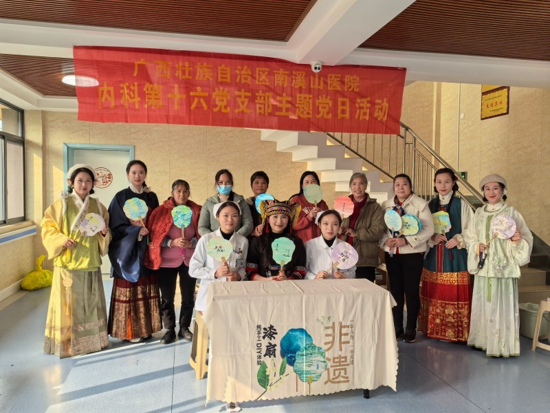 三月春风拂面,万物焕发新机。在第115个国际妇女节来临之际,3月7日,广西壮族自治区南溪山医院内科第十六党支部(全科医学科)以“妙手绘漆扇,医心映芳华”为主题,精心策划了一场别开生面的女神节活动。科室医护人员与住院患者携手创作非遗漆扇,以艺术疗愈身心,用色彩传递温暖。
