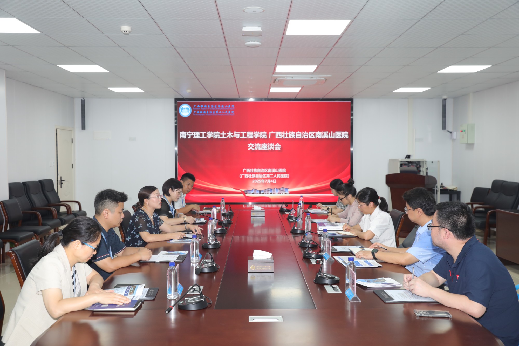 在座谈交流环节,双方人员聚焦党建联建、科研教学、人才培养等议题进行深入交流。此次交流为南宁理工学院土木工程学院与自治区南溪山医院未来的深度合作奠定了坚实基础。