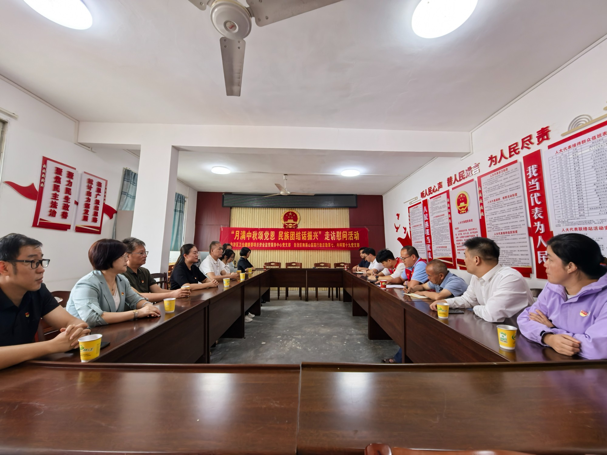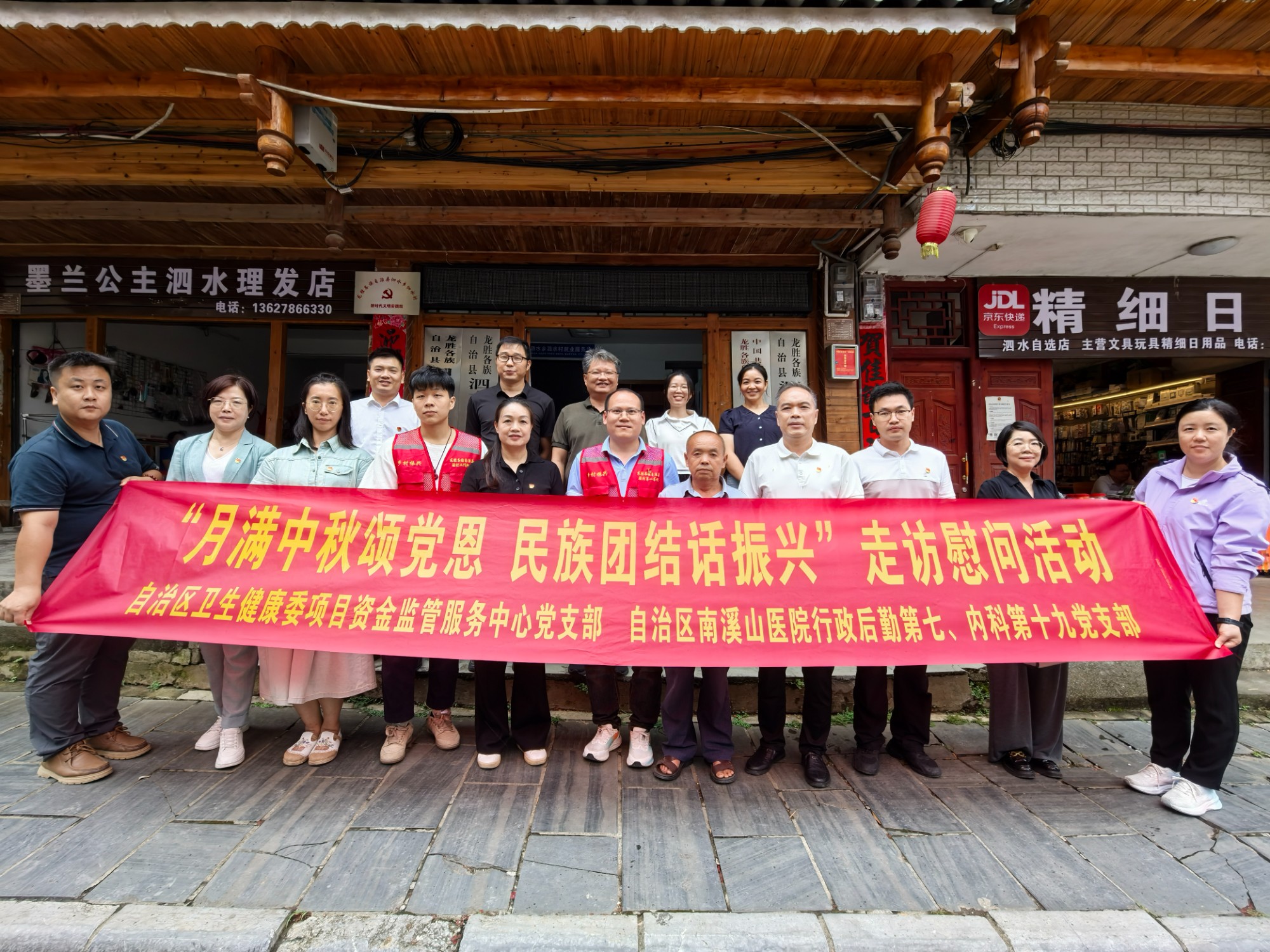 国庆中秋佳节来临之际,为扎实推进民族团结进步与乡村振兴工作,9月25日,自治区卫生健康委项目资金监管服务中心党支部与南溪山医院行政后勤第七、内科第十九党支部赴龙胜县泗水乡泗水村,联合开展“月满中秋颂党恩,民族团结话振兴”走访慰问活动,通过座谈交流、帮扶慰问、送医送药等形式,为当地群众送上节日祝福与健康关怀,以实际行动筑牢民族团结根基,助力乡村振兴发展。