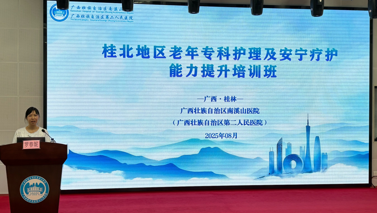 为响应国家“健康中国”战略,提升区域老年专科护理服务水平,8月24日,由广西壮族自治区南溪山医院主办的“桂北地区老年专科护理及安宁疗护能力提升培训班”在医院学术报告厅顺利举办。本次培训聚焦老年护理核心议题,特邀区内权威专家授课,吸引了200余名护理人员参会。
