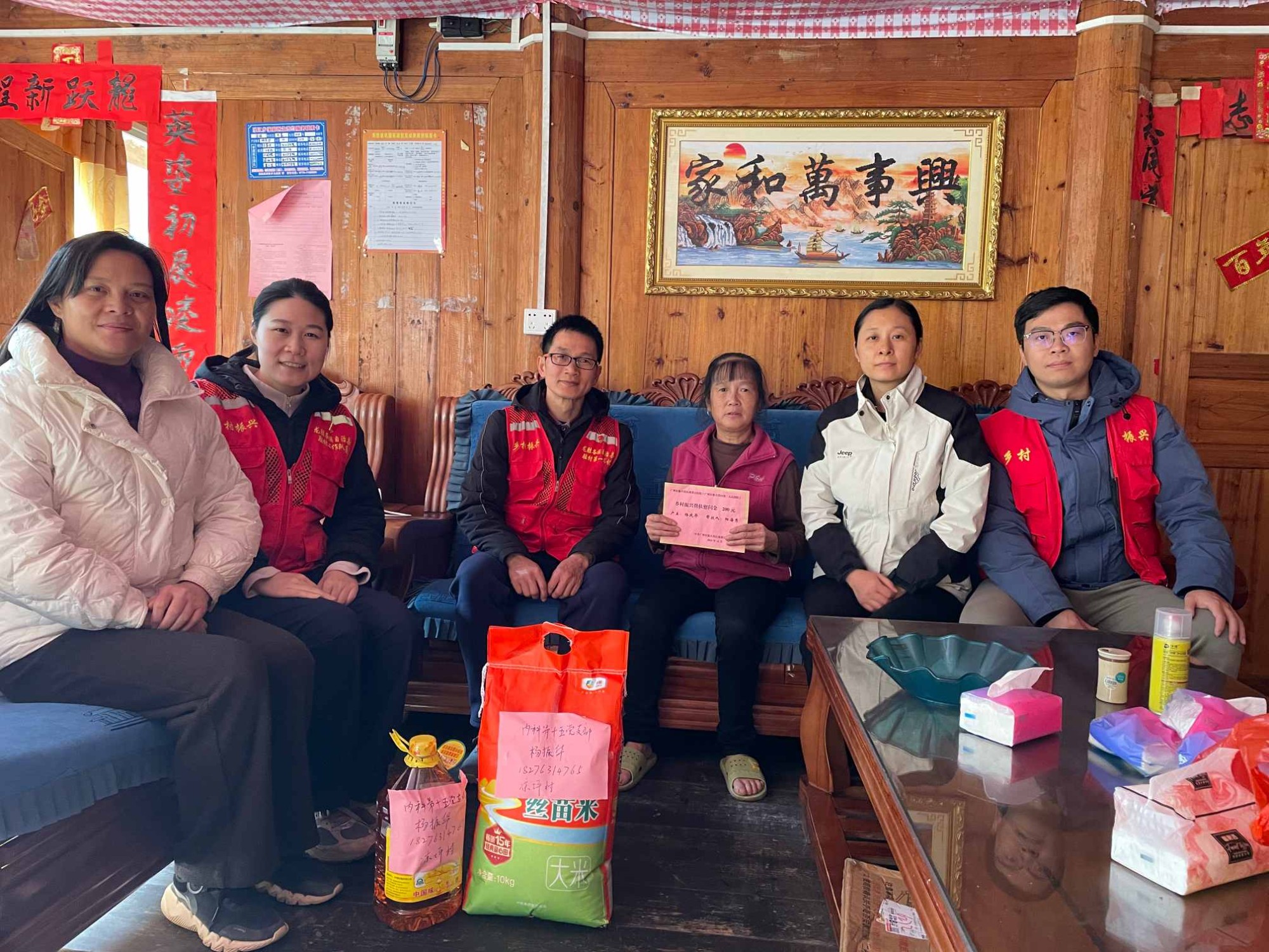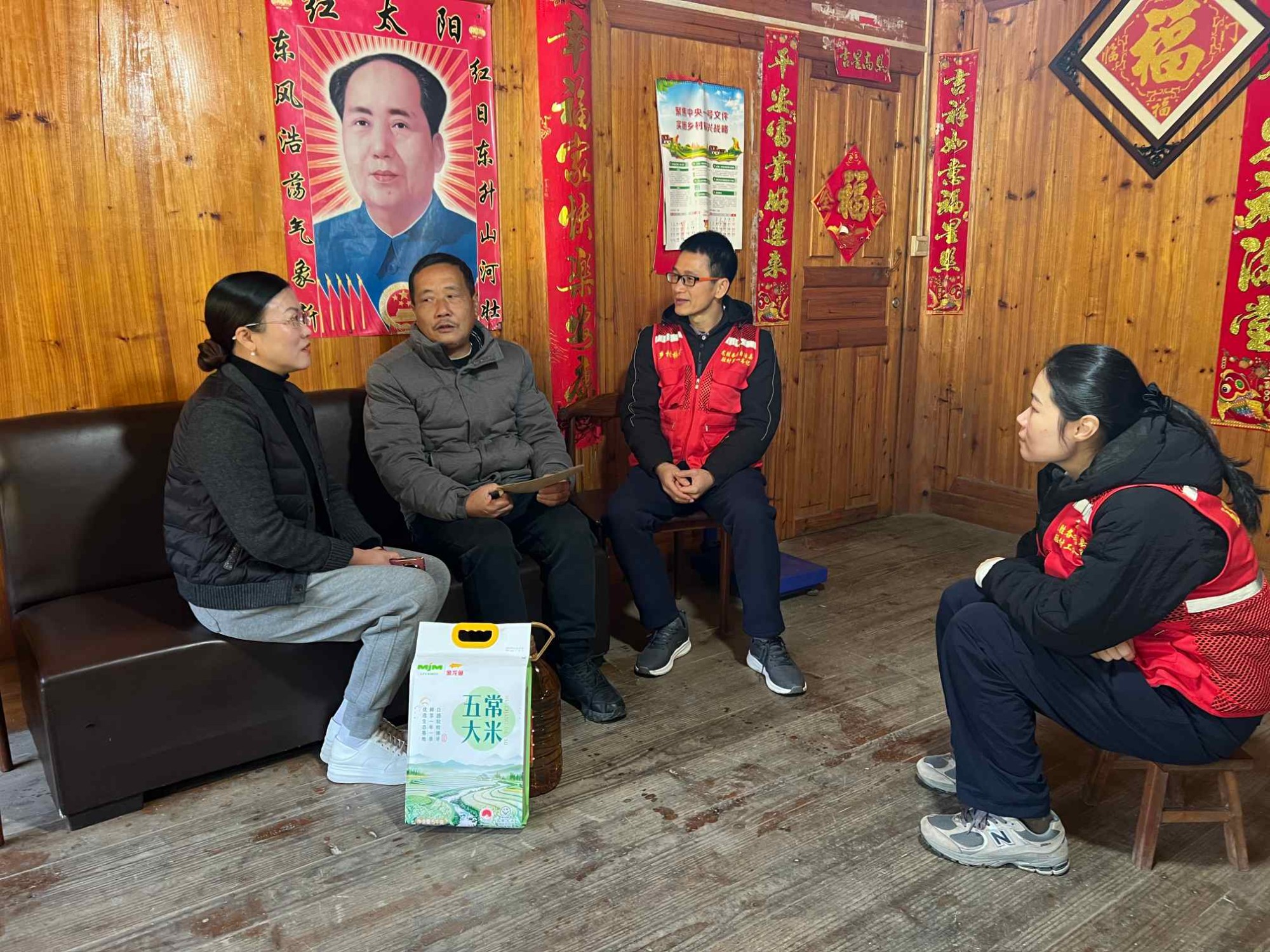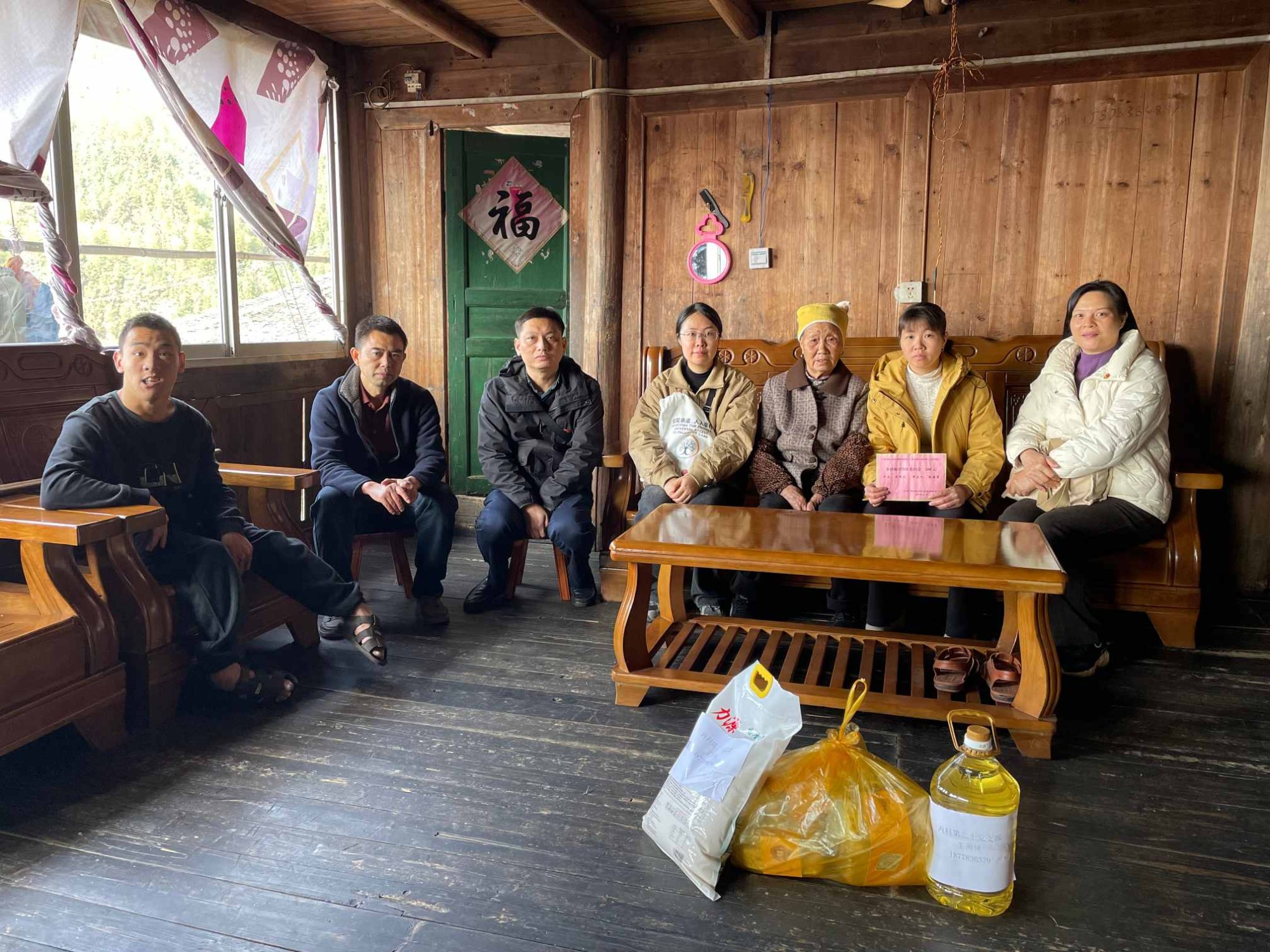 党员同志们带着米、油等生活物资及慰问金,走访慰问两村帮扶对象,详细询问其身体状况和生活需求,与驻村工作队员一起解读帮扶政策,并鼓励其坚定信心,依托当地特色产业增收致富。一声声问候传递温情,一句句嘱托凝聚力量,党员干部与各族群众围坐畅谈,共话民族团结情谊,现场氛围温馨融洽。