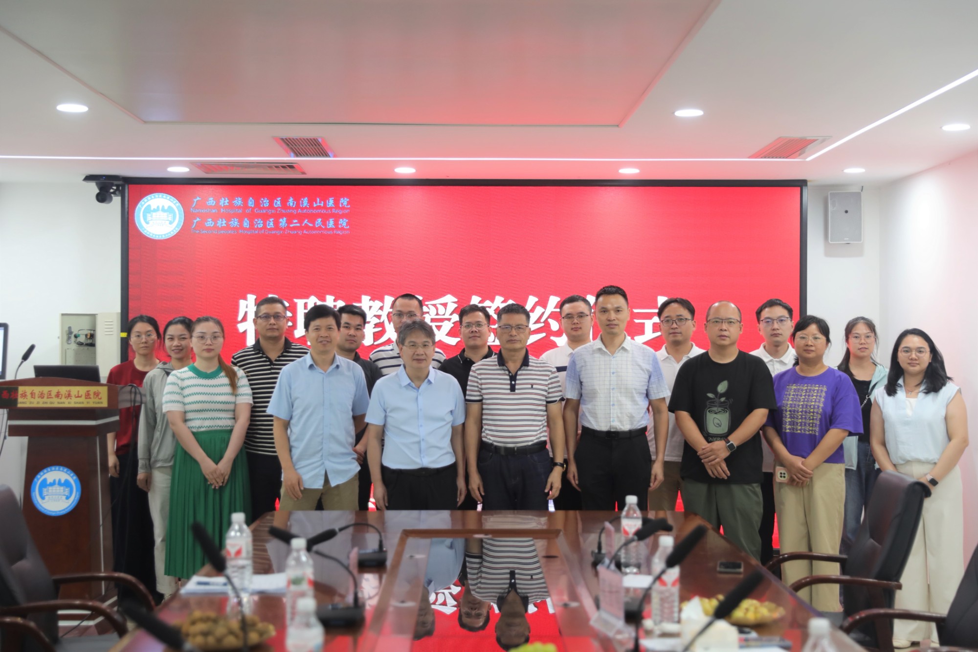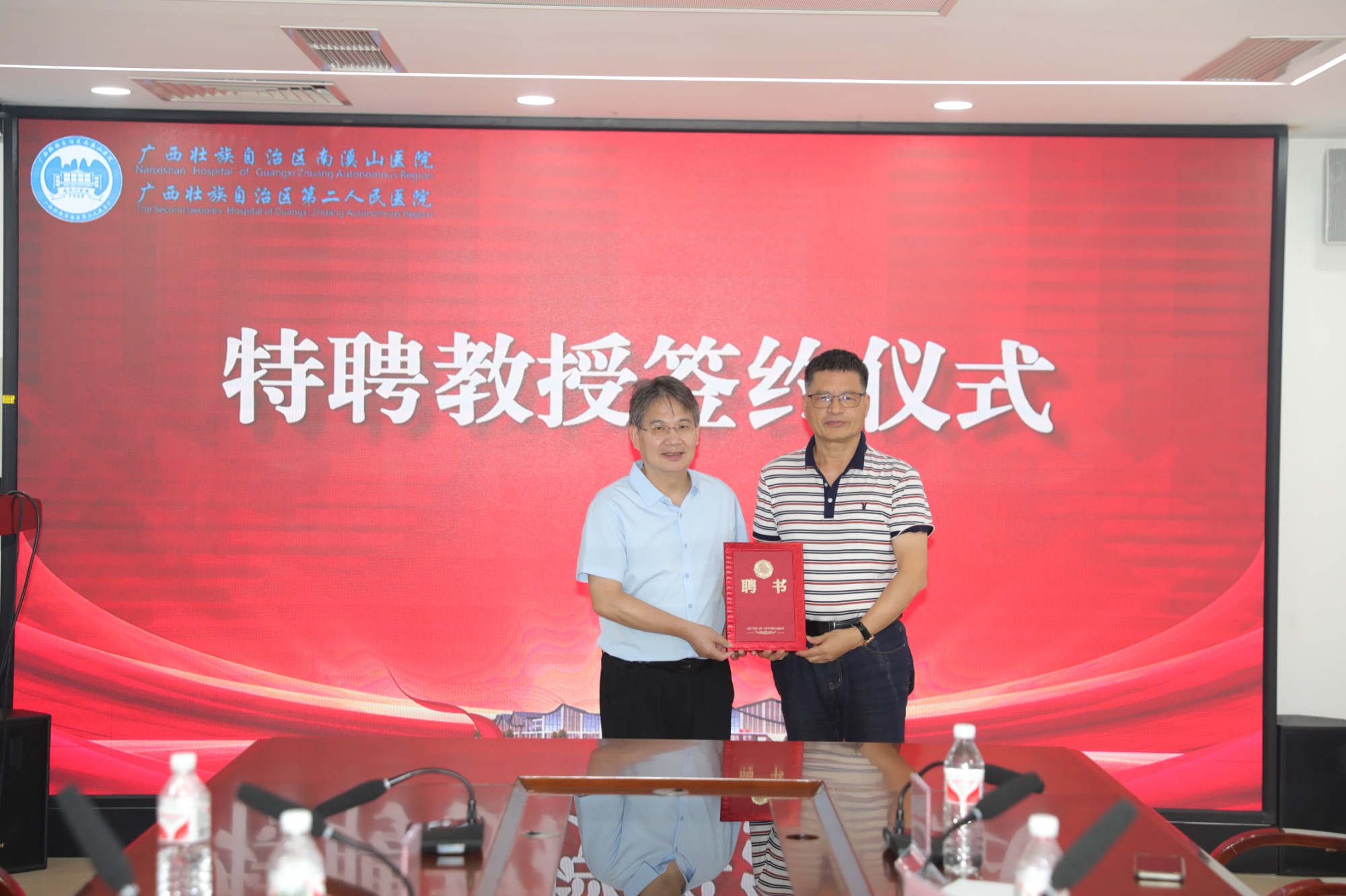 8月14日,南溪山医院泌尿外科发展迎来发展新动能。医院党委书记柳宏林代表医院,正式向国内知名泌尿外科专家、广西医科大学莫曾南教授颁发聘书,聘任其为科室特聘教授。莫曾南教授系国务院特殊津贴专家、博士生导师、广西医科大学第一附属医院泌尿外科学研究所所长,在泌尿外科及男科学领域,尤其在循证医学与精准医学研究方面造诣深厚,成果卓著。