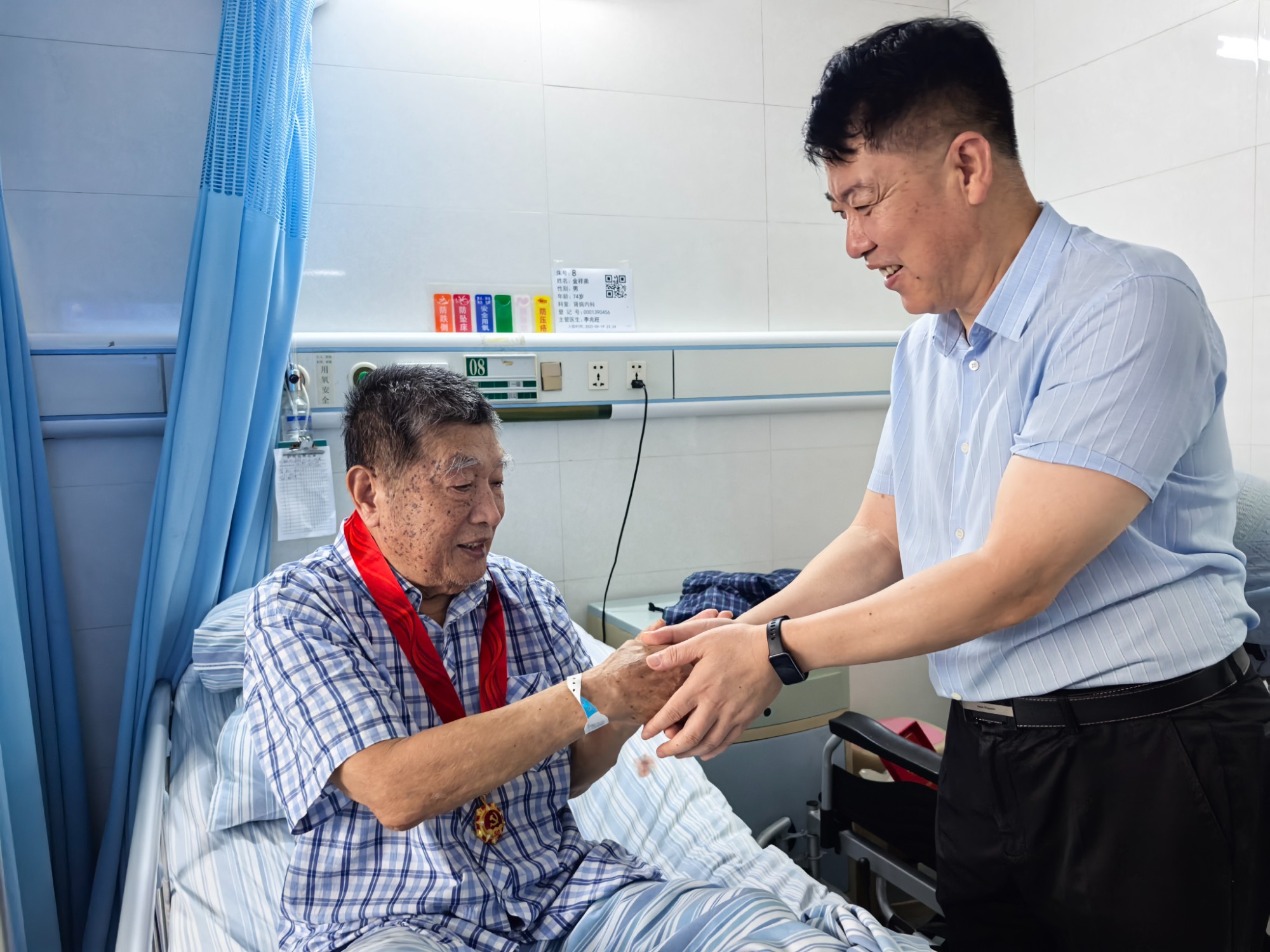 建党节前夕,医院党委书记柳宏林,党委副书记、院长李朝旭等院领导带队,专程走访慰问部分离退休老党员、老专家和职工代表。慰问中,院领导深情回顾老同志们在医院不同发展时期的奉献历程:“你们是医院建设的开拓者、见证者,每一项成就都离不开你们打下的坚实基础。”院方表示,将始终铭记老同志功绩,用心做好服务保障,让他们安享幸福晚年。老同志们纷纷感慨,感谢医院的牵挂,将继续关注医院发展,为后辈加油鼓劲。