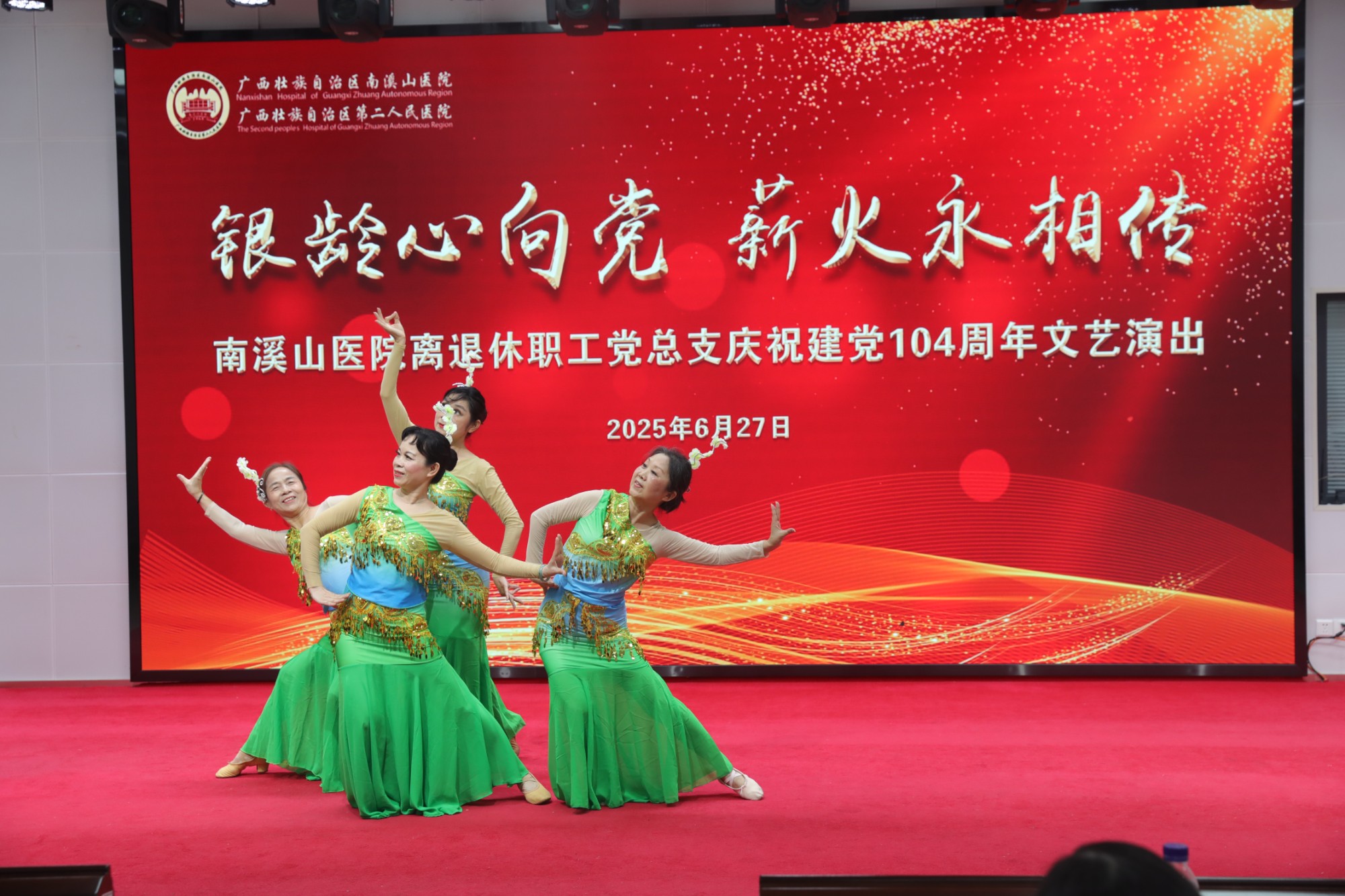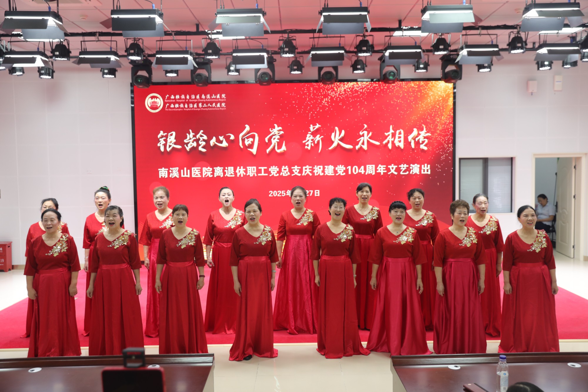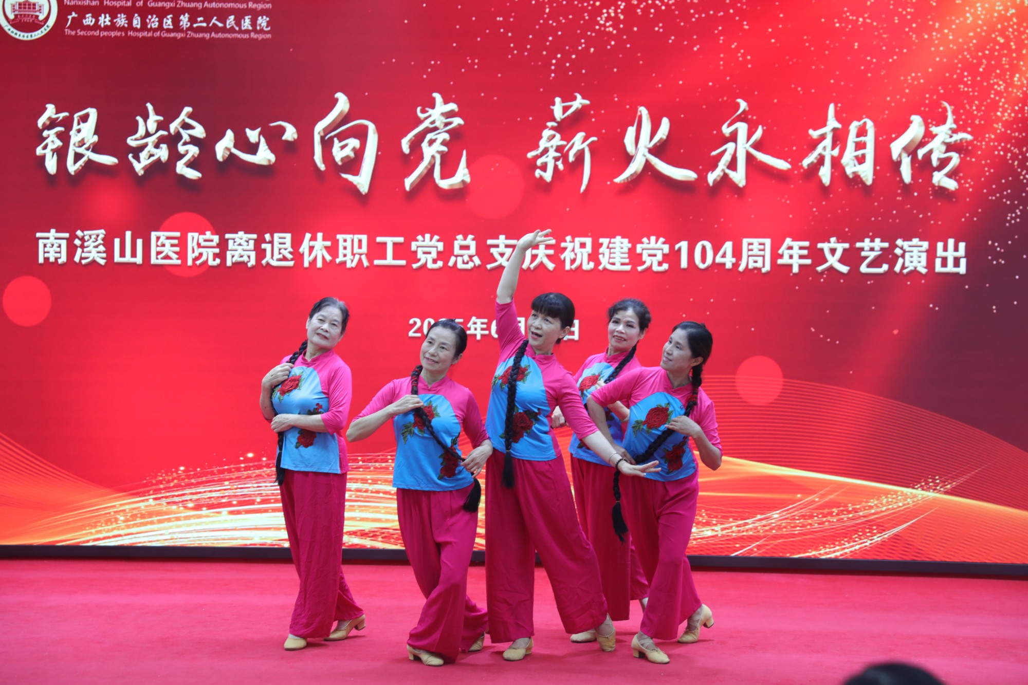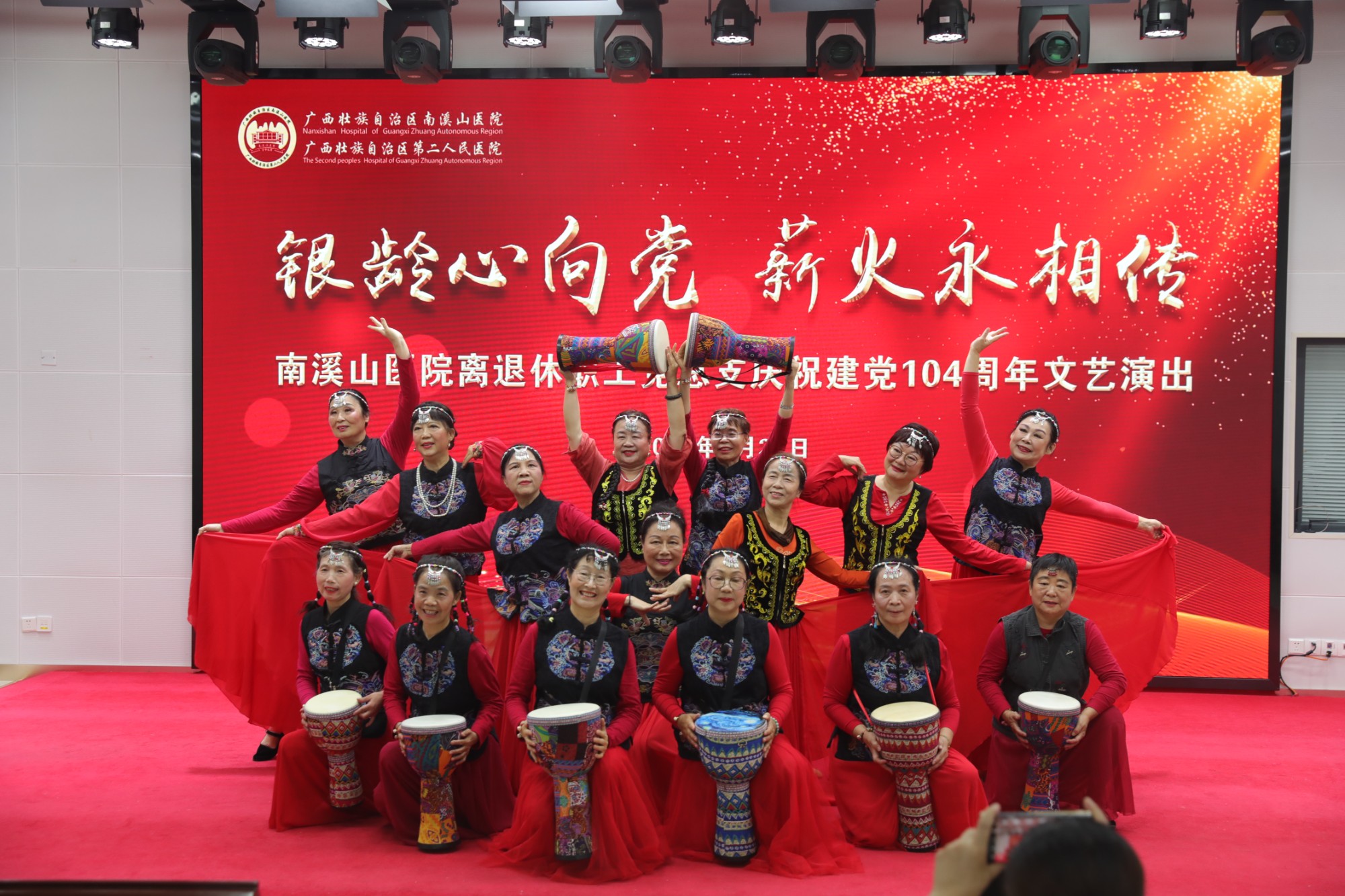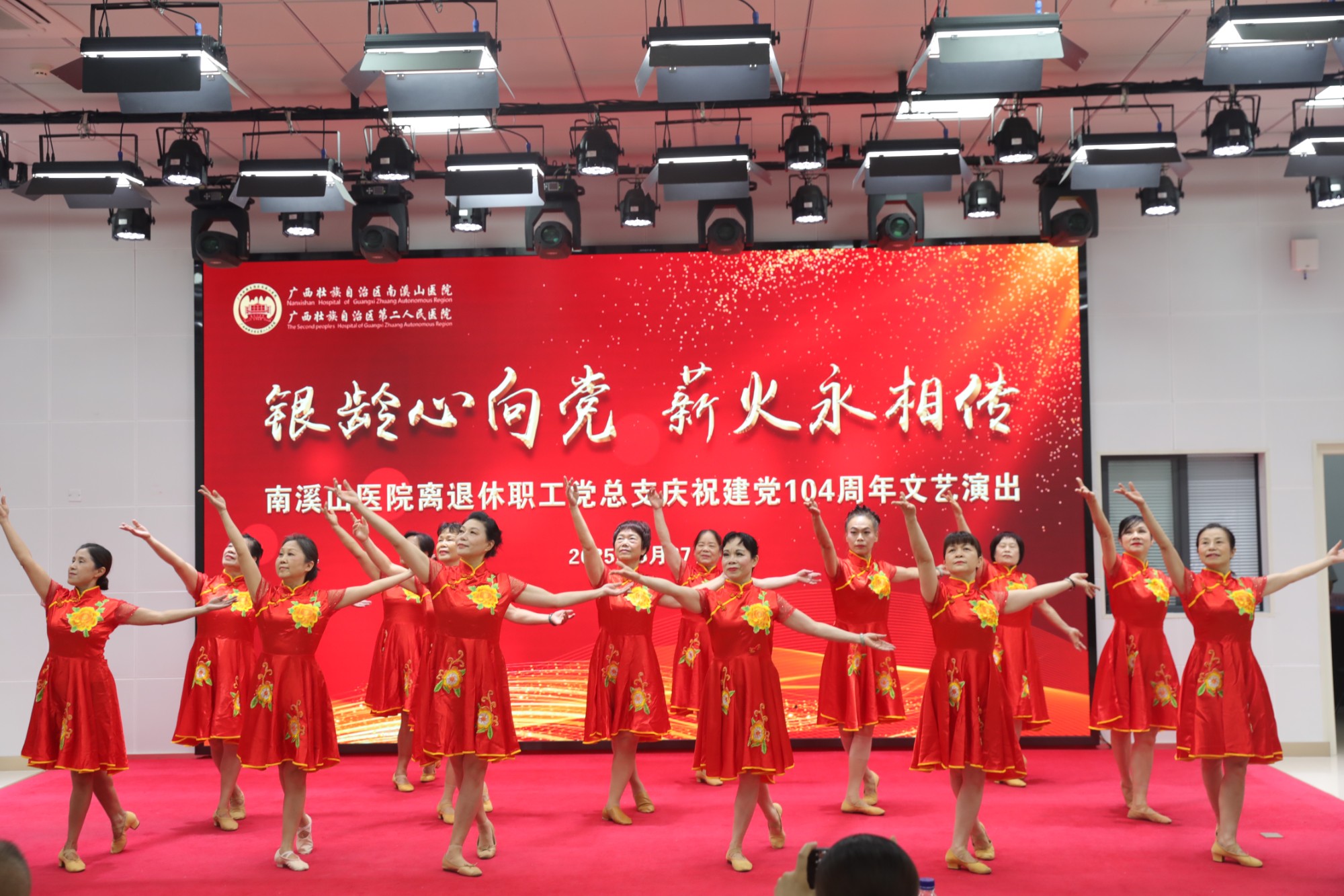 为热烈庆祝中国共产党成立104周年,凝聚全院党员奋进力量,近日,广西壮族自治区南溪山医院离退休党总支以走访慰问、文艺汇演、表彰先进等形式,传承红色基因,共庆党的生日。