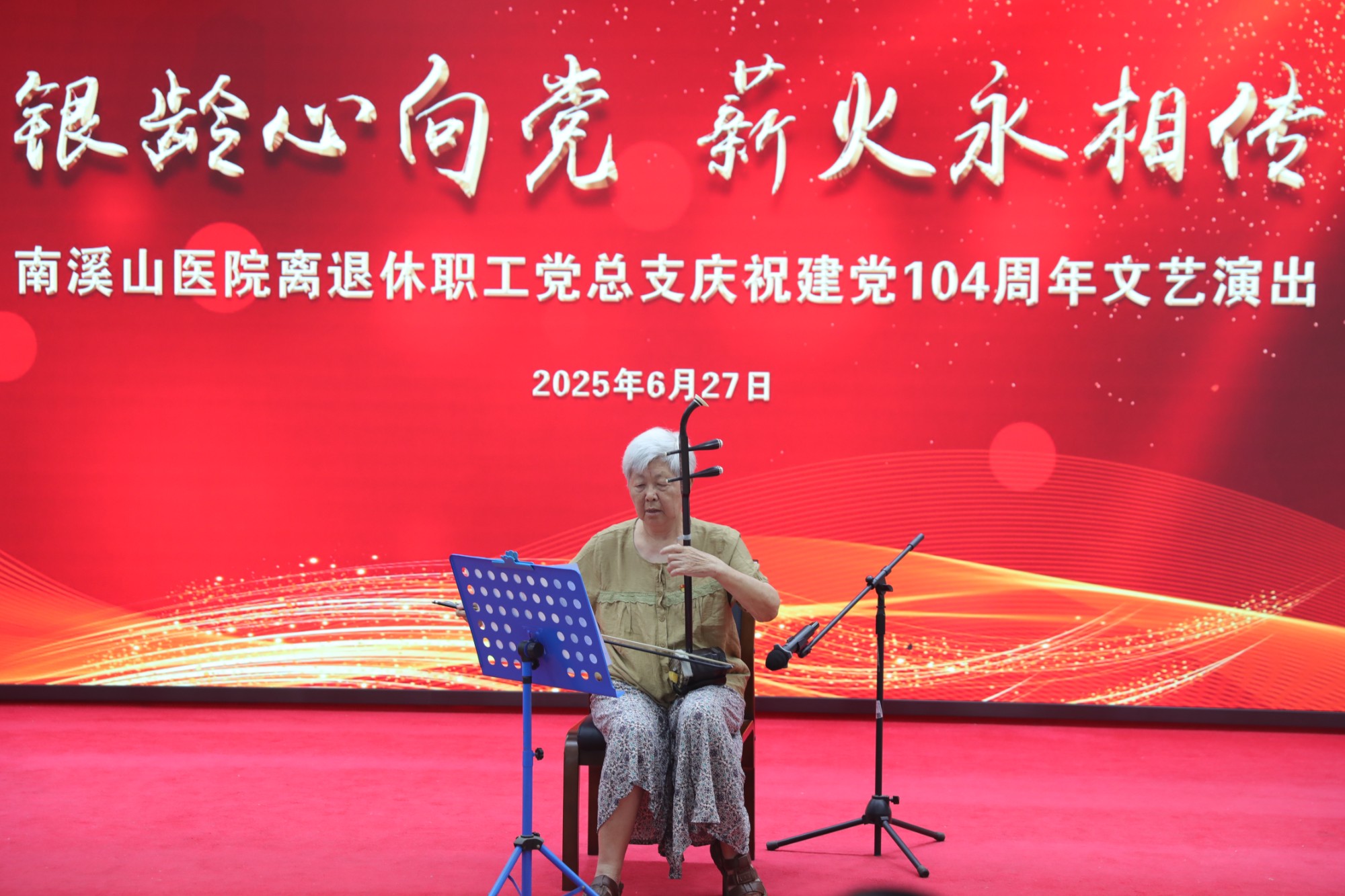 文艺演出中,离退休老同志化身舞台主角,带来合唱、舞蹈、二胡等8个精心编排的节目。他们精神矍铄,用嘹亮歌声演绎经典红曲,以优美舞姿展现时代风貌,每一个表演都饱含对党的热爱,赢得阵阵掌声。活动在全场高唱《没有共产党就没有新中国》的激昂旋律中圆满落幕。