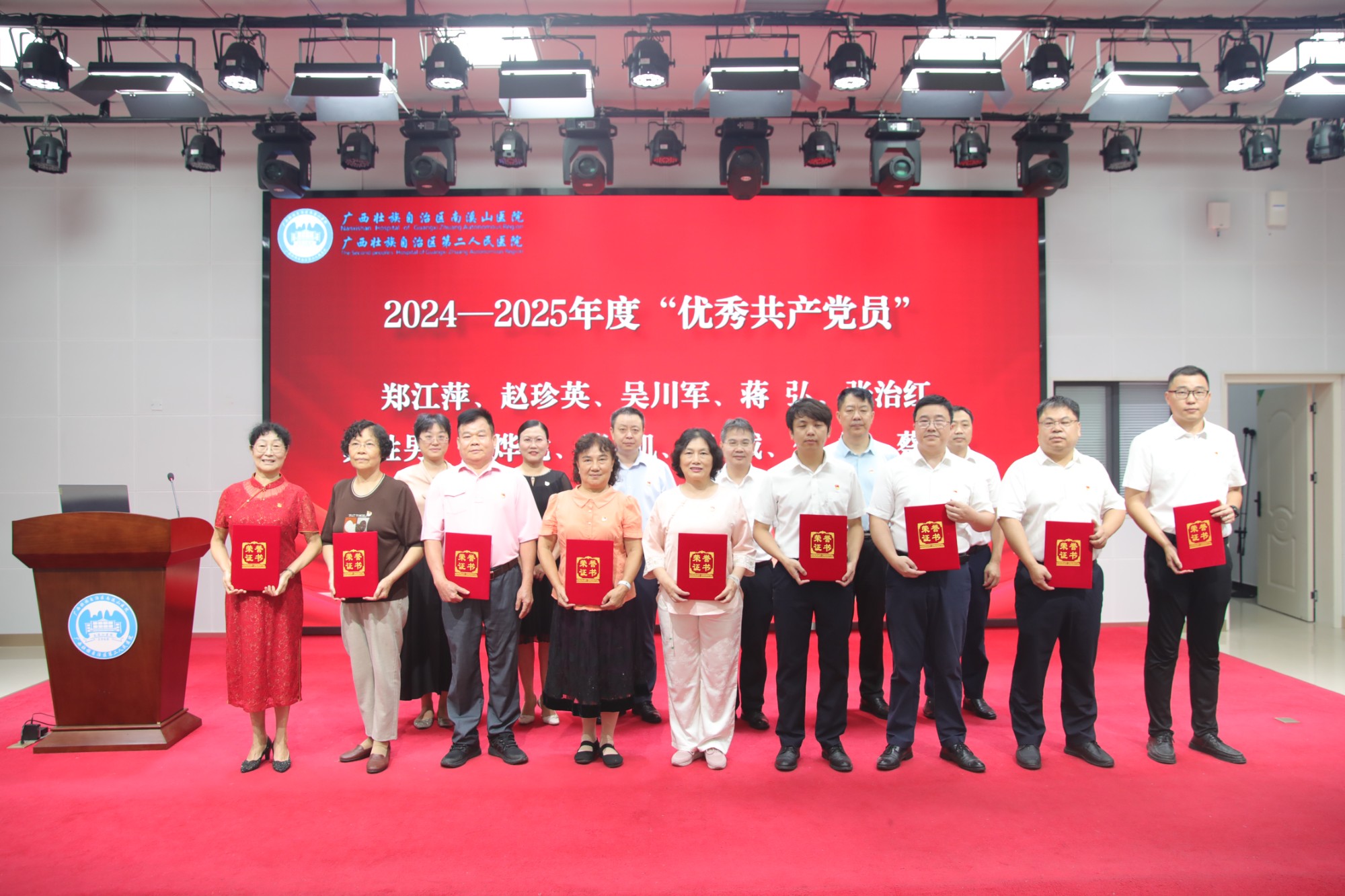 此外,医院庆祝大会上同步开展表彰活动,为“光荣在党50年”的老党员颁发纪念章,表彰5名优秀共产党员。颁发纪念章环节,老党员们胸前的奖章熠熠生辉,半个世纪的党龄见证着他们的忠诚与坚守。接过奖章的老党员激动地说:“这份荣誉是肯定更是责任,我们会继续发挥余热。”随后,院领导为5名优秀共产党员颁发证书,肯定他们在支持医院发展的突出表现,号召全院党员以先进为榜样,立足岗位担当作为。