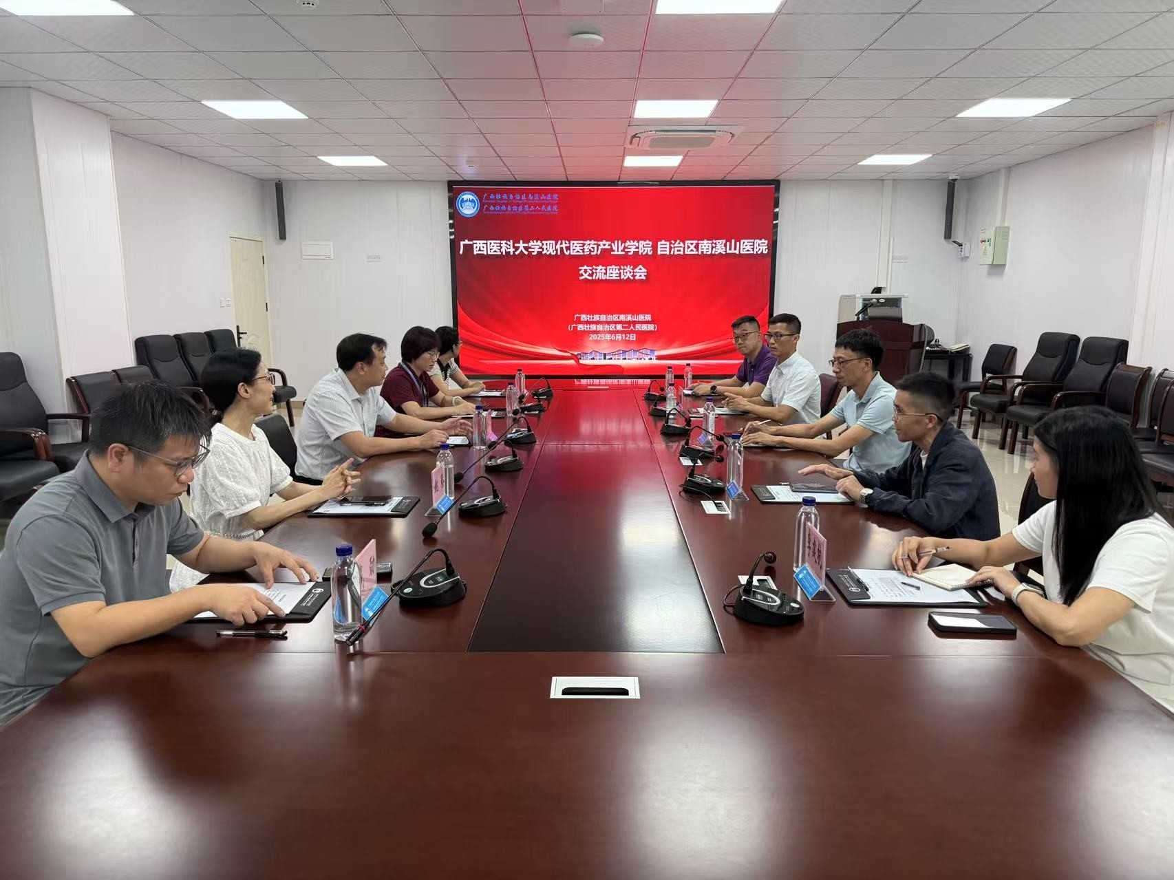 6月12日下午,广西医科大学现代医药产业学院办公室主任谭斌一行赴自治区南溪山医院开展学习交流活动。自治区南溪山医院副院长胡长付以及相关科室负责人陪同。