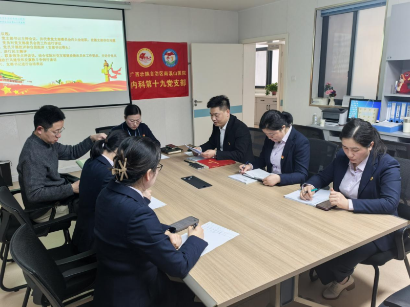 3月12日下午,广西壮族自治区南溪山医院内科第十九党支部于医生办公室,圆满举行了2024年度组织生活会暨党员民主评议会。