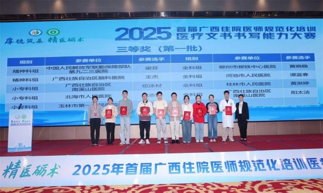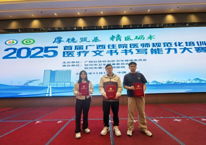 11月15日,由广西壮族自治区卫生健康委员会主办,钦州市卫生健康委员会、钦州市第二人民医院承办的2025年首届广西住院医师规范化培训医疗文书书写能力大赛圆满落幕。