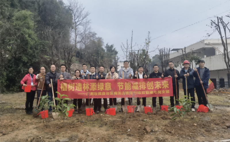 3月12日上午,广西壮族自治区南溪山医院行政后勤第七党支部积极响应“绿水青山就是金山银山”的生态号召,组织党员和积极分子到医院旁边的斗鸡山脚下开展植树节主题党日活动,增强党员环保意识,积极发挥党员先锋模范带头作用,为美化院区环境,共筑生态家园注入蓬勃动力。