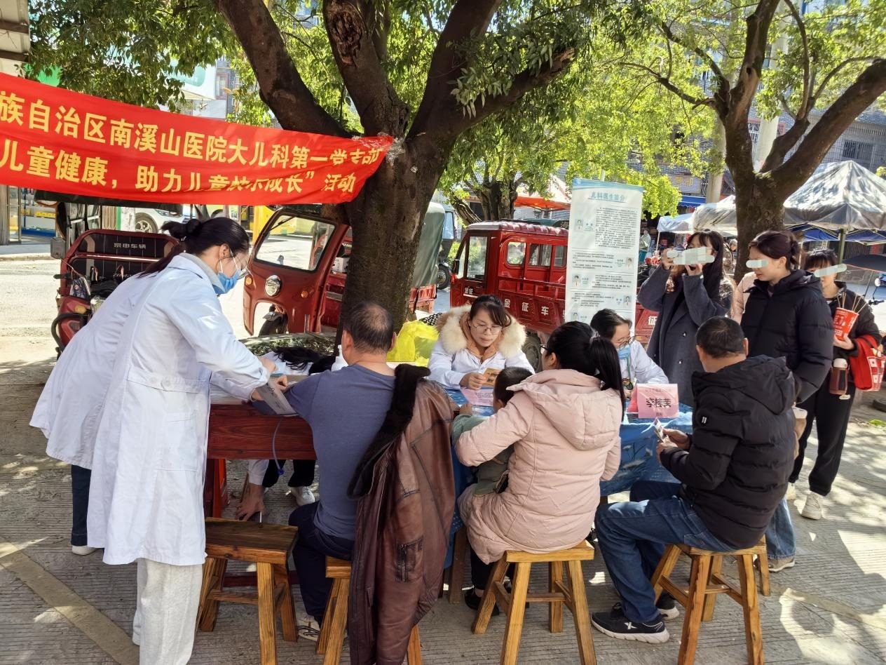 为积极践行社会责任,将优质医疗资源送至群众家门口,11月21日,广西壮族自治区南溪山医院大儿科第一党支部在党支部书记兼科室主任、主任医师姚臻,副书记朱文娟护士长的带领下,组织医护团队一行30余人,前往灵川县海洋乡市场,成功举办了一场以“送医下基层,关爱儿童健康”为主题的义诊活动。此次活动不仅为当地居民提供了便捷、专业的儿科健康服务,也充分展现了科室党员干部的先锋模范作用。