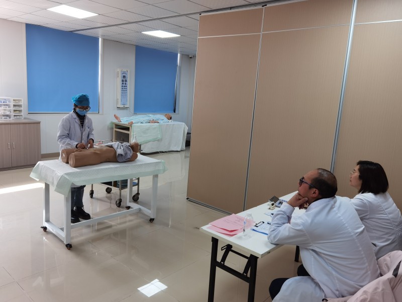 考核分为专业理论考核、临床实践能力考核、年度述职报告三大部分,其中临床实践能力考核按照《住院医师规范化培训临床实践能力考核标准》和《住院医规范化培训内容与标准》(2022版),以客观结构化临床考核(ObjectIve Structured Clinical Examination,OSCE)的形式组织进行,模拟住培结业考核的考站设置。考核过程分为三站,包括体格检查、专科技能操作和医患沟通,严格遵守“以胜任力为导向,落实分层递进”的考核理念,针对不同年级的考核对象设计不同考站及考核难度,并采用国家住培考核标准,统一评分标准。对二年级学员来说既是考核又是培训,更为即将面临毕业的三年级学员提供了一次难得的结业模拟考核机会。