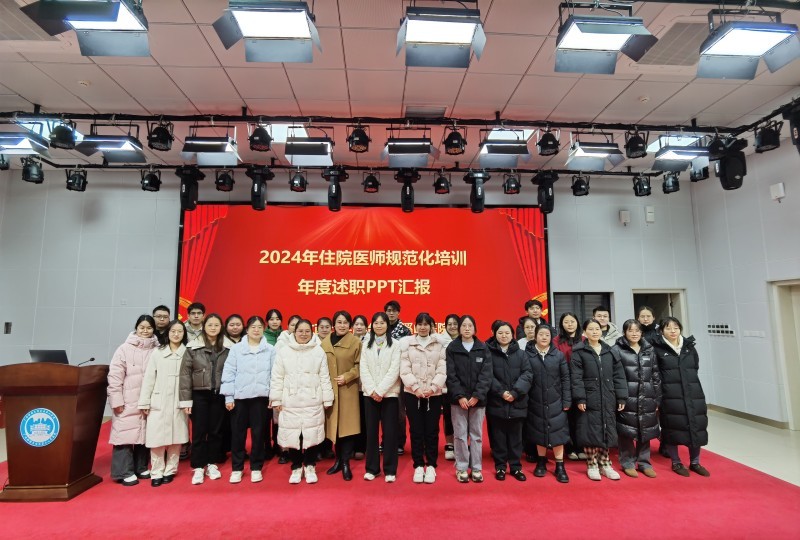 第一站体格检查,学员们抽取进行心脏查体和腹部查体。第二站基本技能操作,涵盖胸腔穿刺和骨髓穿刺,学员们在模拟场景中冷静应对,有条不紊地展示着扎实的操作功底。第三站医患沟通,要求学员在规定时间内通过答题卡所获得的病历信息整合,与SP病人进行沟通交流,考察学员的临床沟通能力,通过充分沟通实现医患共同决策。述职现场,各住院医师通过PPT展示了本年度各自的轮转情况、临床实践、收获感悟、科研情况以及个人成长与不足,并进行下一年度计划等多方面,充分体现了学员们在住培过程中的成长与蜕变。此次汇报,不仅为师生提供共同学习交流的平台,同时调动了学员积极性,增加基地凝聚力。