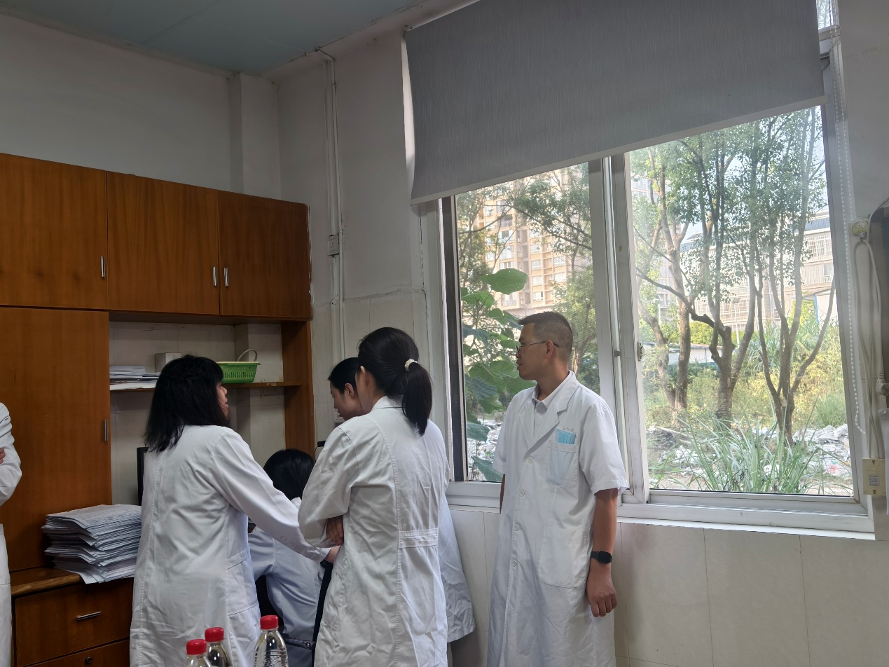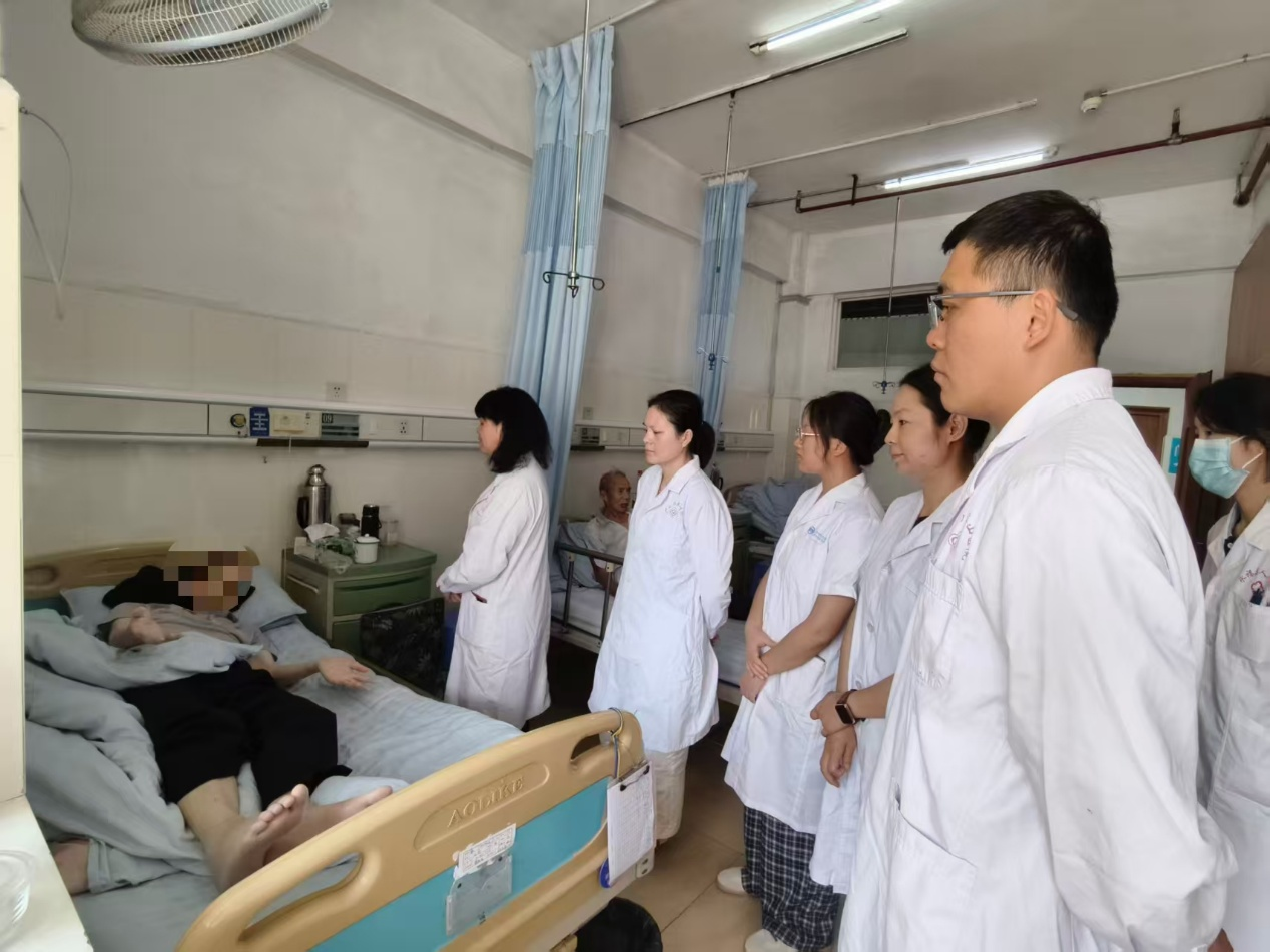 交流不止于理论探讨,更延伸至临床一线。座谈会后,在南溪山医院内科十三支部书记陈熙主任的带领下,支部党员们来到病房,针对一位无法手术,已萌生退意、放弃治疗的晚期胃癌患者进行了联合床边查房。陈熙主任与患者及其家属进行了亲切交谈,耐心倾听了他们的顾虑,并从专业角度详细分析了病情,介绍了当前有效的治疗手段与希望。陈熙主任深情鼓励患者要树立信心,积极配合治疗,当前除了手术还有其他治疗方式可以控制肿瘤,缓解症状,延长生活时间,不要轻易放弃。这番温暖而有力的话语深深打动了患者,该患者当场从抗拒治疗转变成愿意接受治疗,并重燃治疗希望,表示愿意在出院后前往南溪山医院接受后续的抗肿瘤治疗。这一场景生动诠释了“以患者为中心”的服务理念,展现了党建活动引领下的人文关怀。