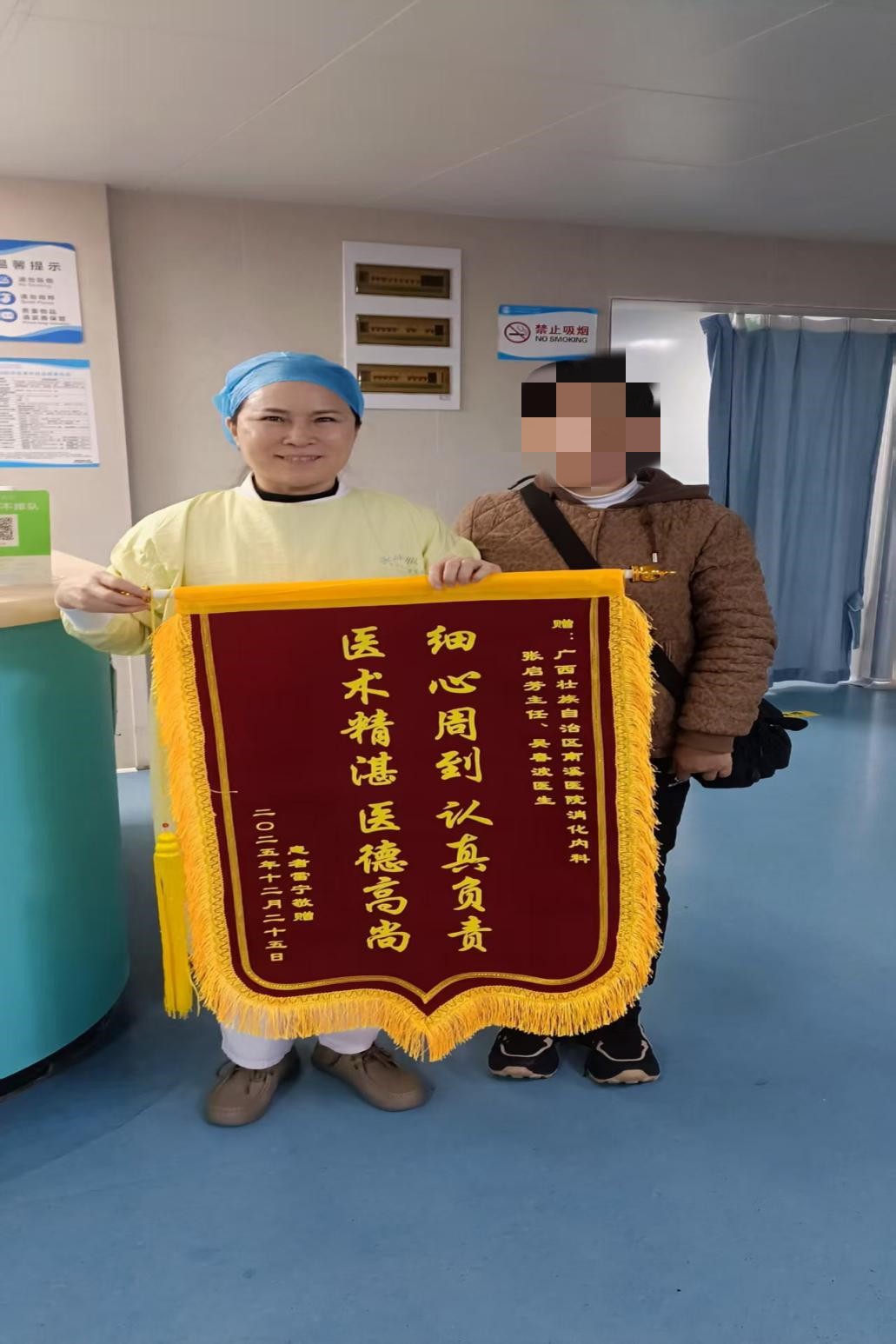 近日,广西壮族自治区南溪山医院消化内科成功为一名因误吞鱼刺致食管脓肿的患者,实施内镜下异物取出+脓肿引流术,术后恢复良好,已顺利康复出院,专门向科室医护团队送上锦旗致谢。