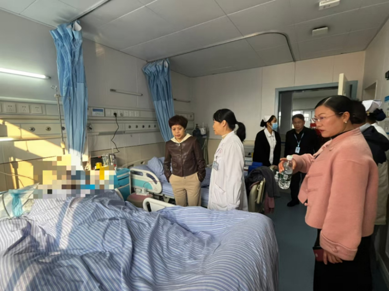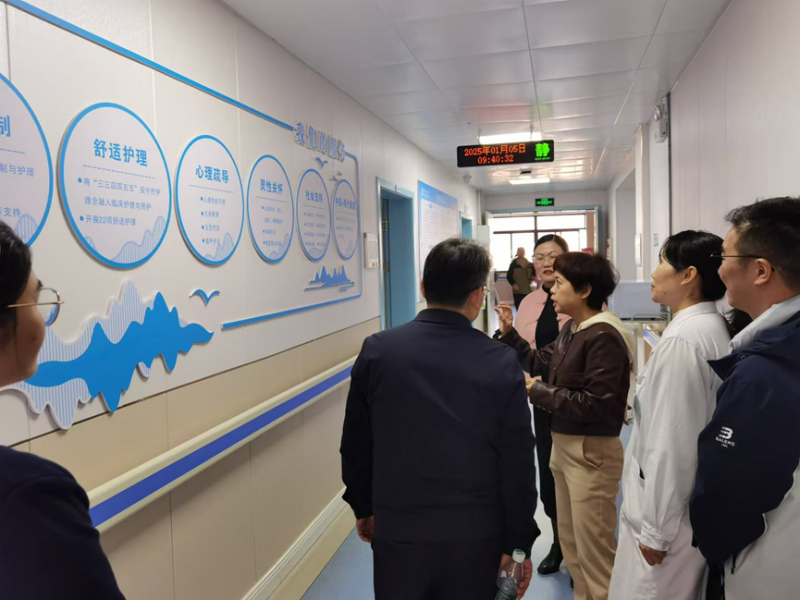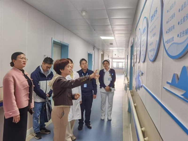 麦浩一行视察了安宁疗护中心病房环境和配套设施及展示的文化墙,详细询问了病房管理、队伍建设、安宁疗护服务实施等情况,并与入住的部分患者亲切交流,对安宁疗护中心的理念、环境、服务给予了肯定。