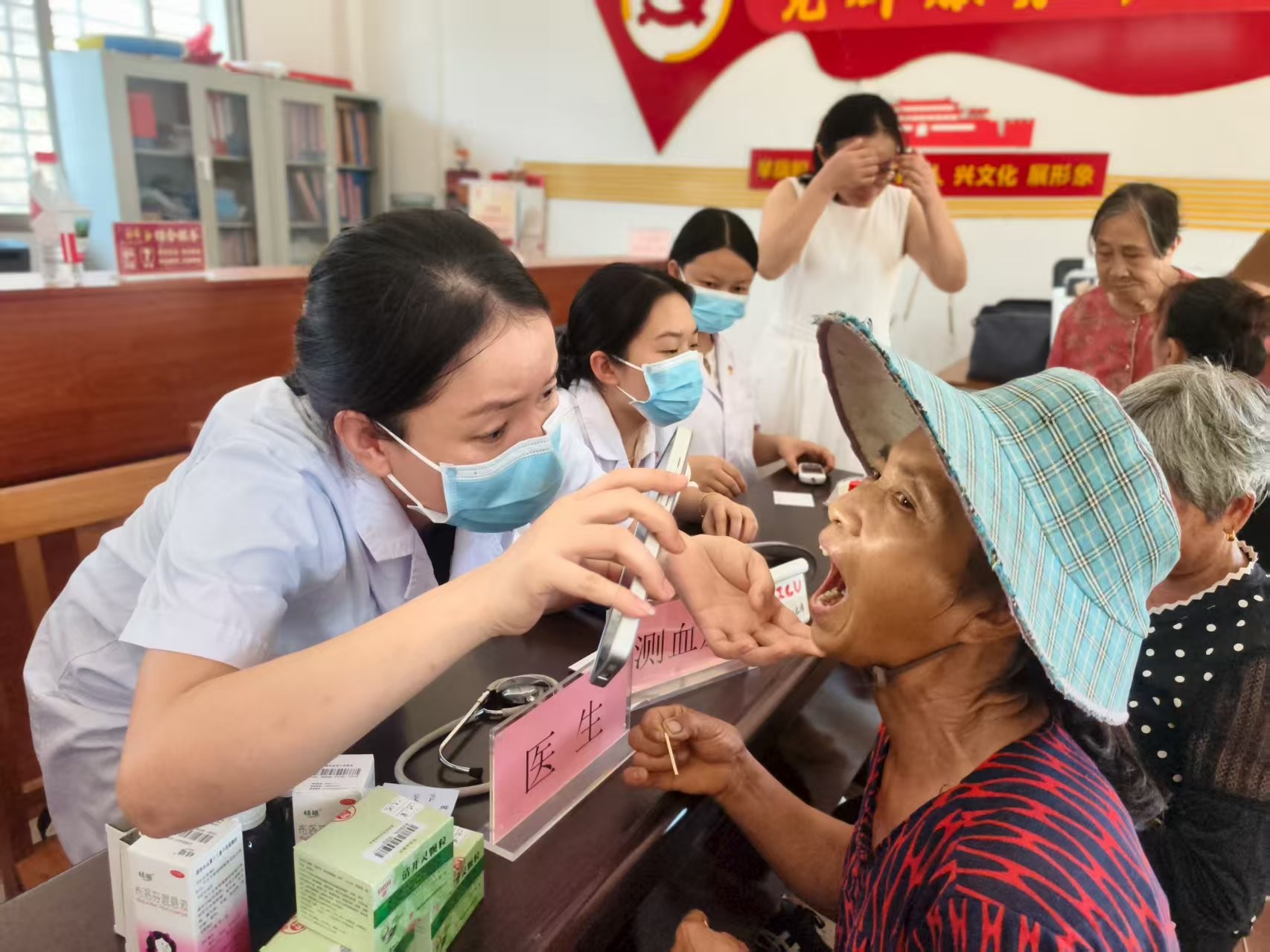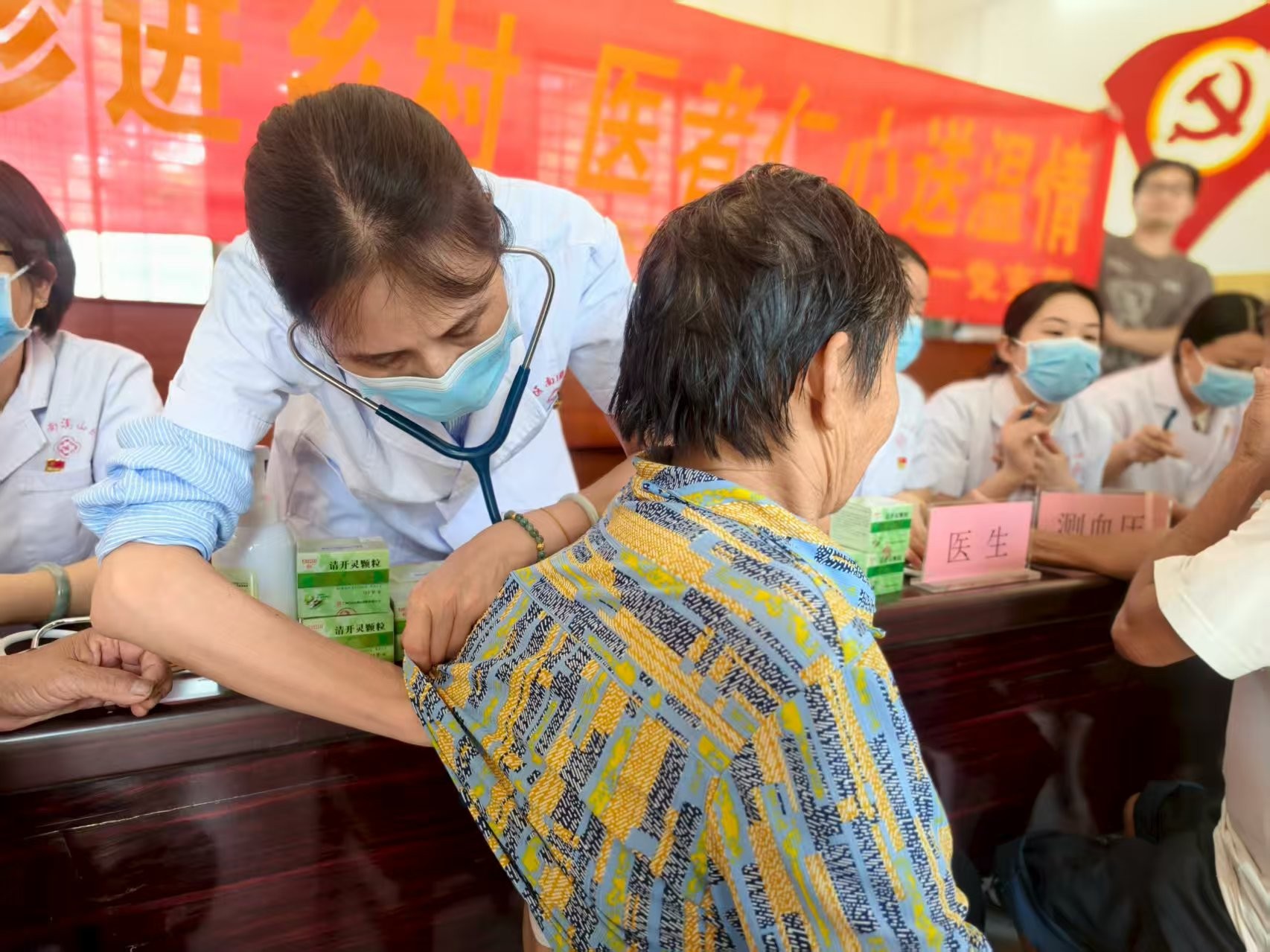 活动现场,医疗团队耐心细致地为每一位前来咨询的村民答疑解惑,提供专业的健康指导和诊疗建议,让村民们在家门口就能享受到优质的医疗服务。同时为村民提供了测量血压、血糖等服务,为村民们的健康状况进行了初步筛查,并根据每个人的需求,免费发放部分家庭常备药物,为村民们的日常用药需求提供了贴心保障。