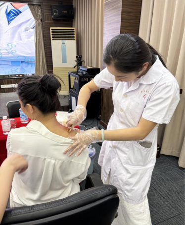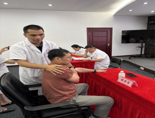 本次健康义诊活动还增加了新项目中医理疗,每次健康管理活动,支部党员都有力的将党建工作与健康管理工作紧密结合、深度融合,开展院内健康体检、院外健康指导、全方位、广角度的全民健康管理。中心秉承三师共管的健康服务体系,整合医学健康管理、慢病控制、亚健康调理、疾病预防等强大而专业的技术保证。党员始终牢记接续奋斗勇毅前行的宗旨,并融入到日常工作中,入党积极分子唐梦云积极参加活动,与同事熊国凤今年已取得中医理疗资格证书,本次义诊充分发挥专业特长,为单位职工进行肩颈部刮痧等理疗10余人,以实际行动专业素养更好的为人民群众健康保驾护航。