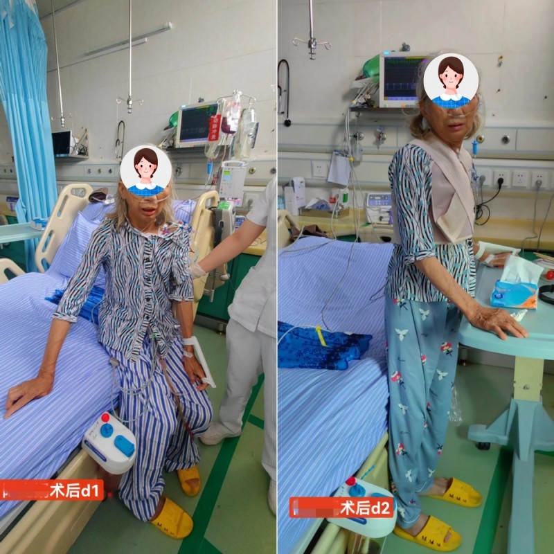 由于患者年老体弱、营养不良,贫血(血红蛋白只有93g/L),老伴儿及儿子希望能用微创介入的方式代替开胸手术,减少老人的痛苦,患者本人也担心二次手术风险而拒绝配合治疗,但是双介入瓣膜高昂的治疗费用打消了老人家微创介入手术的念头,最终要求开胸手术并愿意积极配合术前功能锻炼。开胸手术,也极具挑战。
