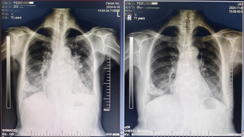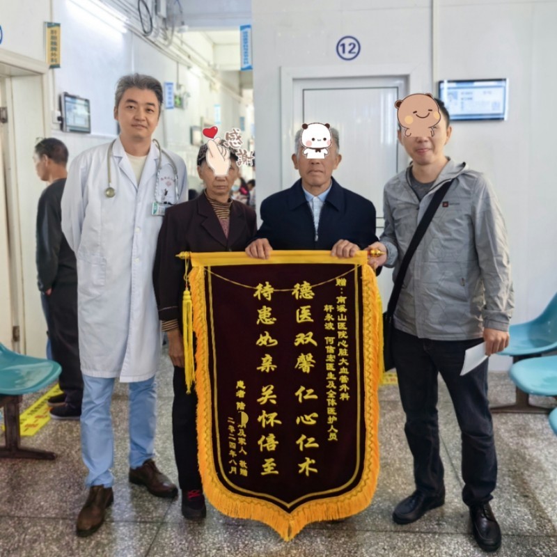 术后半年复查随访时,患者专门送锦旗到门诊表示感谢,老人说:“术前不到80斤,现在都快100斤了,术前平地20米都走不了,现在上4层楼都不带喘的!”“住院期间过的71岁生日,我们一家人充满感激!”