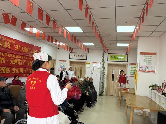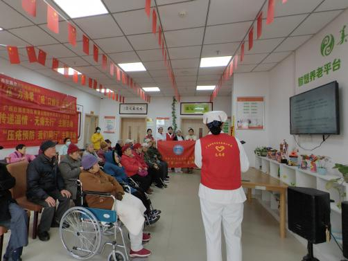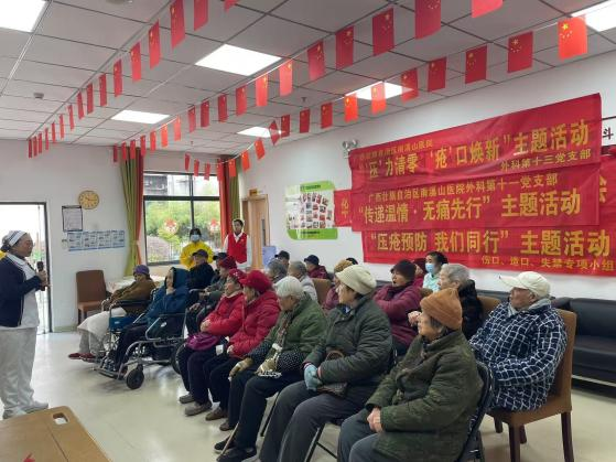 外科第十一党支部疼痛科血管外科护士长张唐馨用通俗易懂的语言讲解了冬季老年人血栓的预防、科学缓解疼痛;外科第十三党支部书记、烧伤整形与创面修复外科护士长杨平为老年人科普压疮的知识及预防;中皮康第一党支部中医科护士李珊珊为老人们示范骨关节的中医按摩保健等实用知识。大家结合老年人慢病防治需求,引导养成科学的生活方式,增强自我防护意识,老人们听得津津有味。
