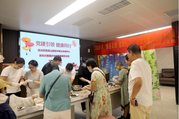 一枚枚亲手制作的药膳月饼飘香四溢,传统节气导引术舒缓身心,中秋花灯与中医药文化相映成趣。9月28日,在国庆与中秋双节来临之际,广西壮族自治区南溪山医院中医治未病中心、健康管理中心联合医院工会在国际健康管理中心二楼举办了“党建引领·健康同行”周年庆暨双节健康惠民活动。