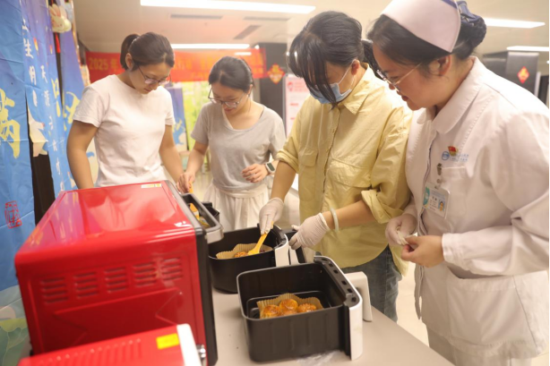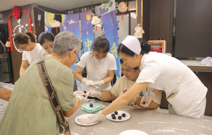 活动现场洋溢着喜庆祥和的节日氛围。在“趣味手作,品味健康”环节中医科护士长唐莉芳带领医院医务人员调制中医月饼馅料并与前来参加本次活动的市民朋友们共同制作月饼。寓意团圆与健康的特色药膳月饼,让市民朋友在温馨互动中了解食养智慧,感受舌尖上的中医文化。