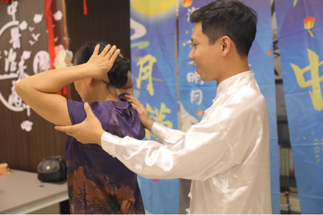 本次活动还设置了“导引传习,调和身心”环节,特邀张涛舶技师带领大家体验传统节气导引术,学习简单实用的颈椎养护方法,在舒缓运动中放松身心,提升生命活力。