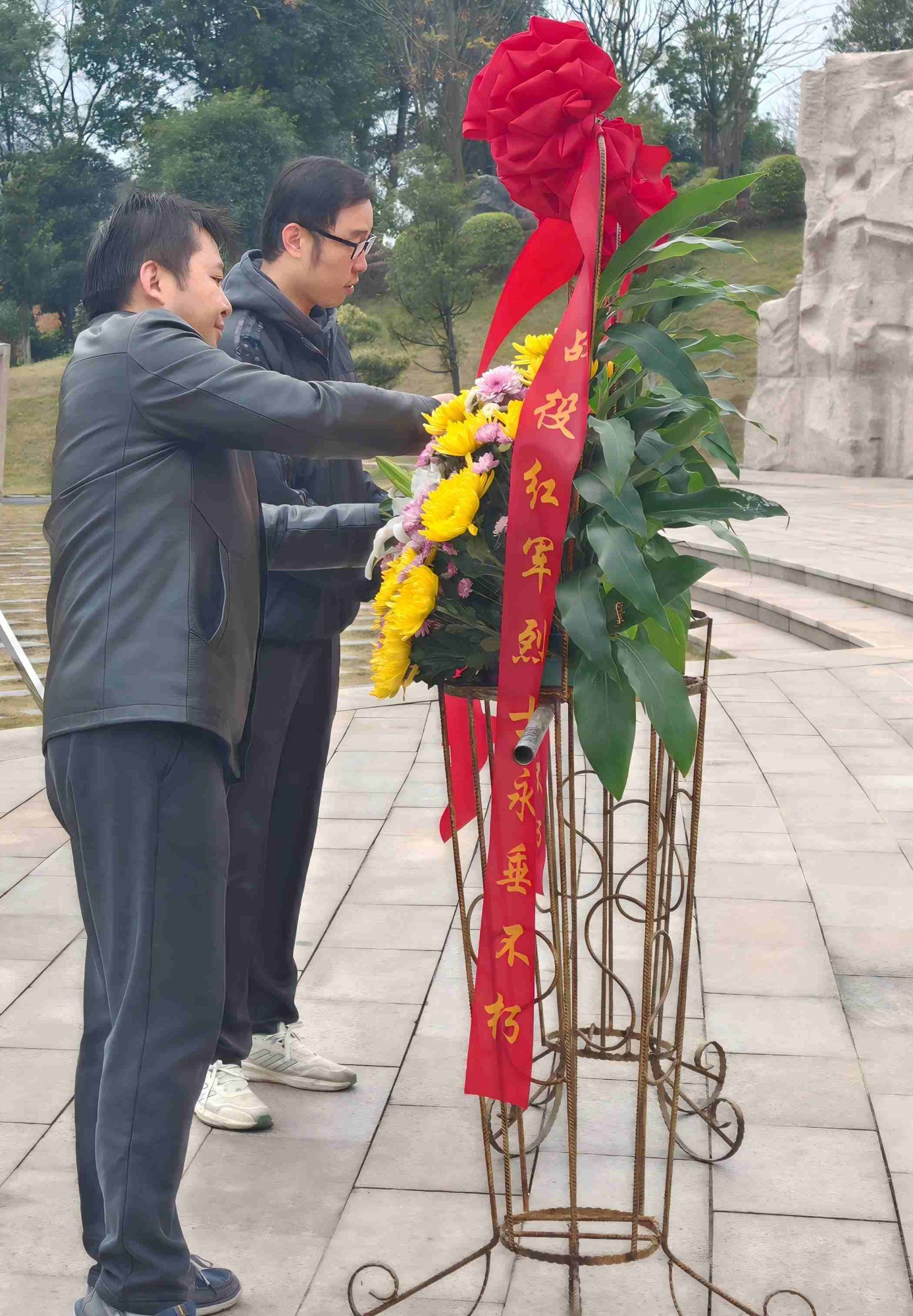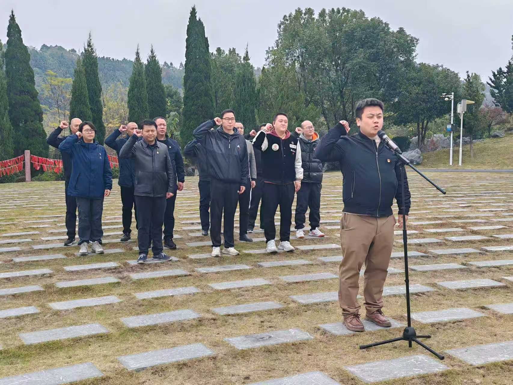 在庄严肃穆的凭吊广场,党员们整齐列队,向革命烈士敬献花篮、鞠躬致敬,表达深切哀思与崇高敬意。面对鲜红党旗,全体党员重温入党誓词,铿锵誓言回荡在纪念园上空,凝聚起团结奋进的磅礴力量。