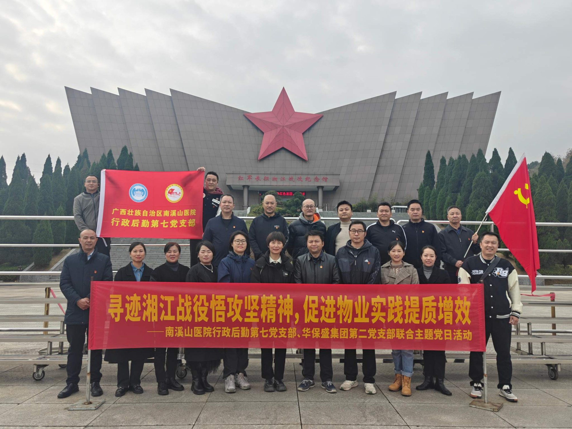 为深化红色基因传承,推动党建与业务深度融合,12月7日,南溪山医院行政后勤第七党支部与华保盛集团第二党支部于近日携手开展“寻迹湘江战役悟攻坚精神,促进物业实践提质增效”联合主题党日活动。通过沉浸式红色教育与实践交流,激发党员攻坚克难的内生动力,赋能后勤服务高质量发展。