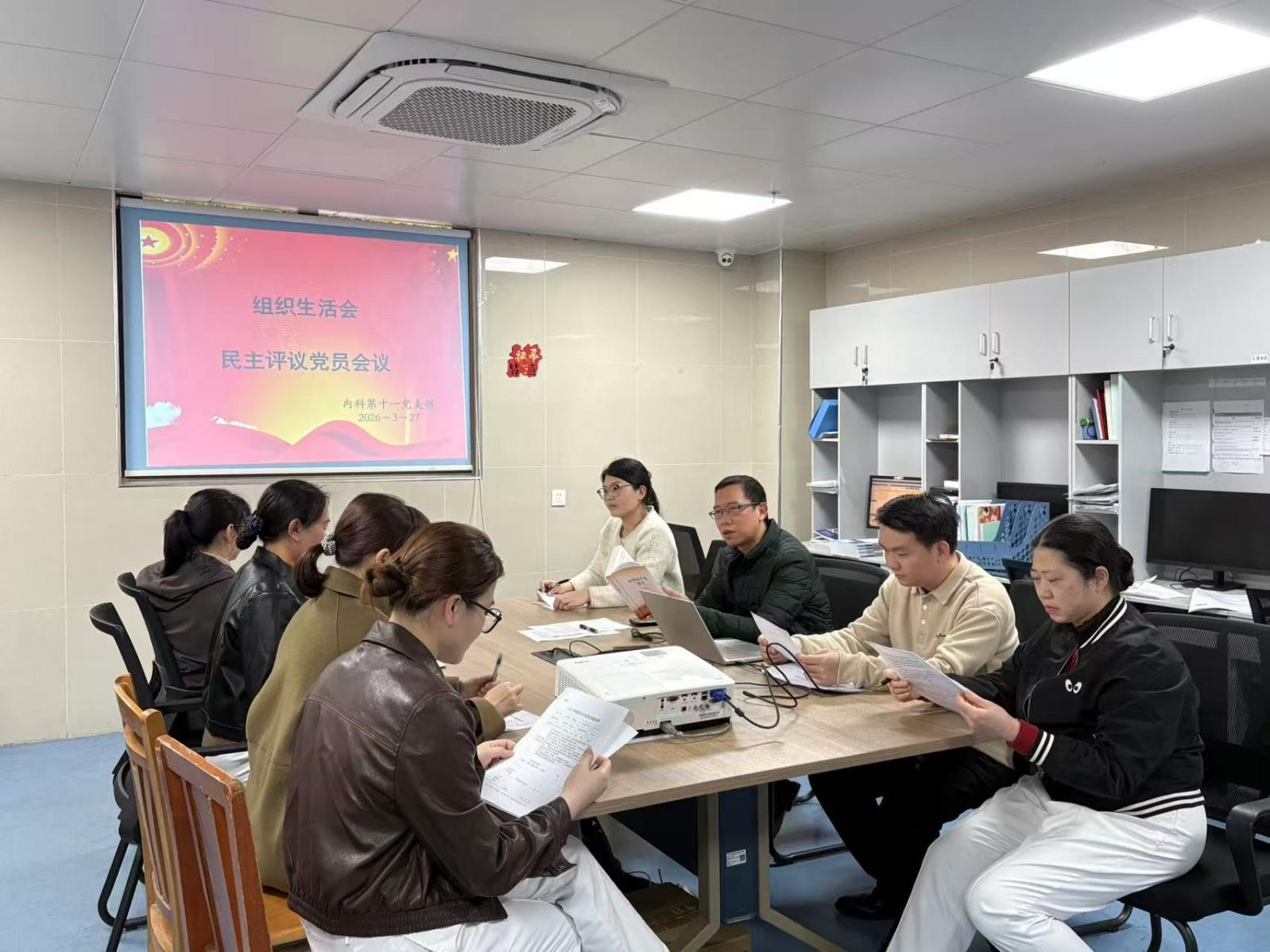 为深入学习贯彻习近平新时代中国特色社会主义思想,严格落实党内组织生活制度,2026年3月27日,内科第十一党支部召开2025年度组织生活会暨民主评议党员大会。支部全体党员参加会议,会议由党支部书记扈鑫荣主持。