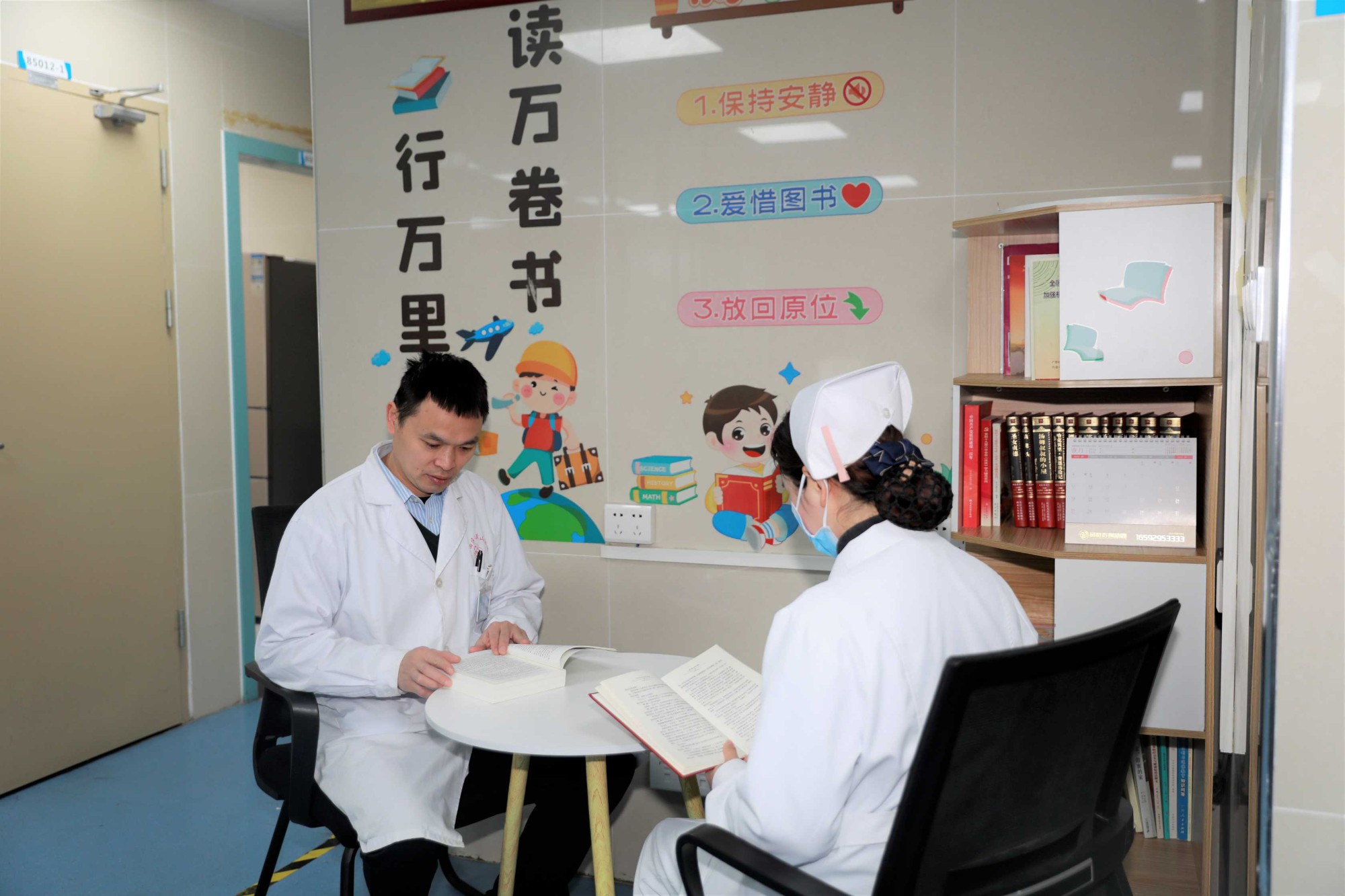 医院党委坚持“四高”策略,着力打造高质量读书阵地。目前,全院已建成包括“职工书屋”、广西桂林图书馆馆外流通点以及遍布各科室的“悦读角”在内的阅读空间近300平方米,藏书8000余册。这些阅读设施不仅服务于本院职工,也向患者及家属开放,有效改善了就医体验,在忙碌的诊疗工作间隙,医护人员常利用午休、交接班前后等碎片化时间,在“悦读角”翻阅书籍、交流心得,让书香浸润诊疗全程,切实体现了全民阅读设施的“普惠高效”和“便利性”。