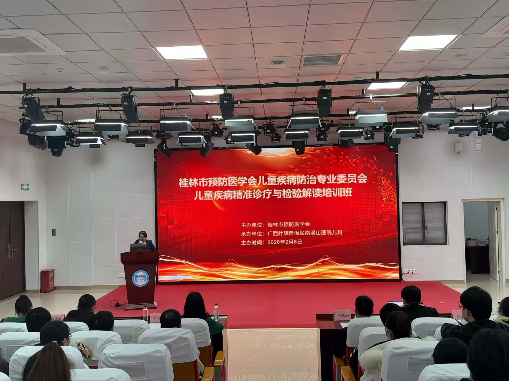 为提升全市儿童疾病精准诊疗与检验解读能力,规范 NGS 报告、细菌药敏实验结果判读标准,夯实儿童呼吸道感染等疾病临床诊治水平,搭建儿科领域学术交流平台,由桂林市预防医学会儿童疾病防治专业委员会主办、广西壮族自治区南溪山医院儿科承办的“儿童疾病精准诊疗与检验解读培训班”于2026年2月6日在桂林圆满落幕。全市各级医疗机构儿科医师、检验技师、儿童保健骨干等百余名专业人员齐聚一堂,共学前沿技术、共商诊疗规范、共护儿童健康。