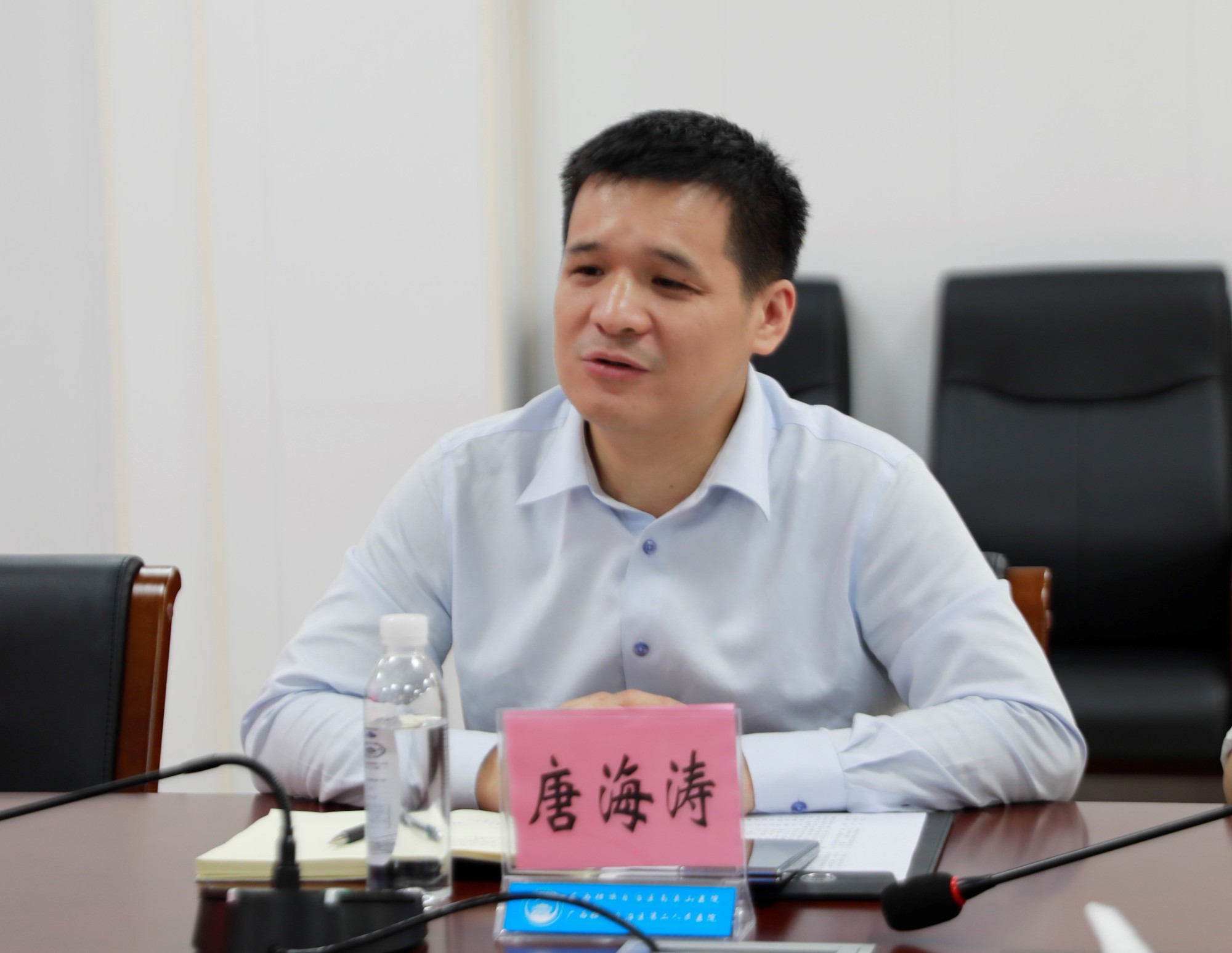 会议伊始,柳宏林书记在致辞中对广西师大化学与药学学院一行的到访表示欢迎,并介绍了南溪山医院的发展历程、学科建设、临床科研及教学管理等情况。他表示,医院期待借助广西师范大学在化学、药学领域的基础研究优势和重点实验室平台,推动临床与基础研究的双向赋能。随后,农智杰书记介绍了化学与药学学院的来访成员及主要来意,指出学院拥有广西生物医药领域唯一的博士点及国家重点实验室等重要科研平台,希望与南溪山医院建立长效合作机制,实现基础研究、应用研究全链条协同,推动“临床经验”转化为“科研成果”。
