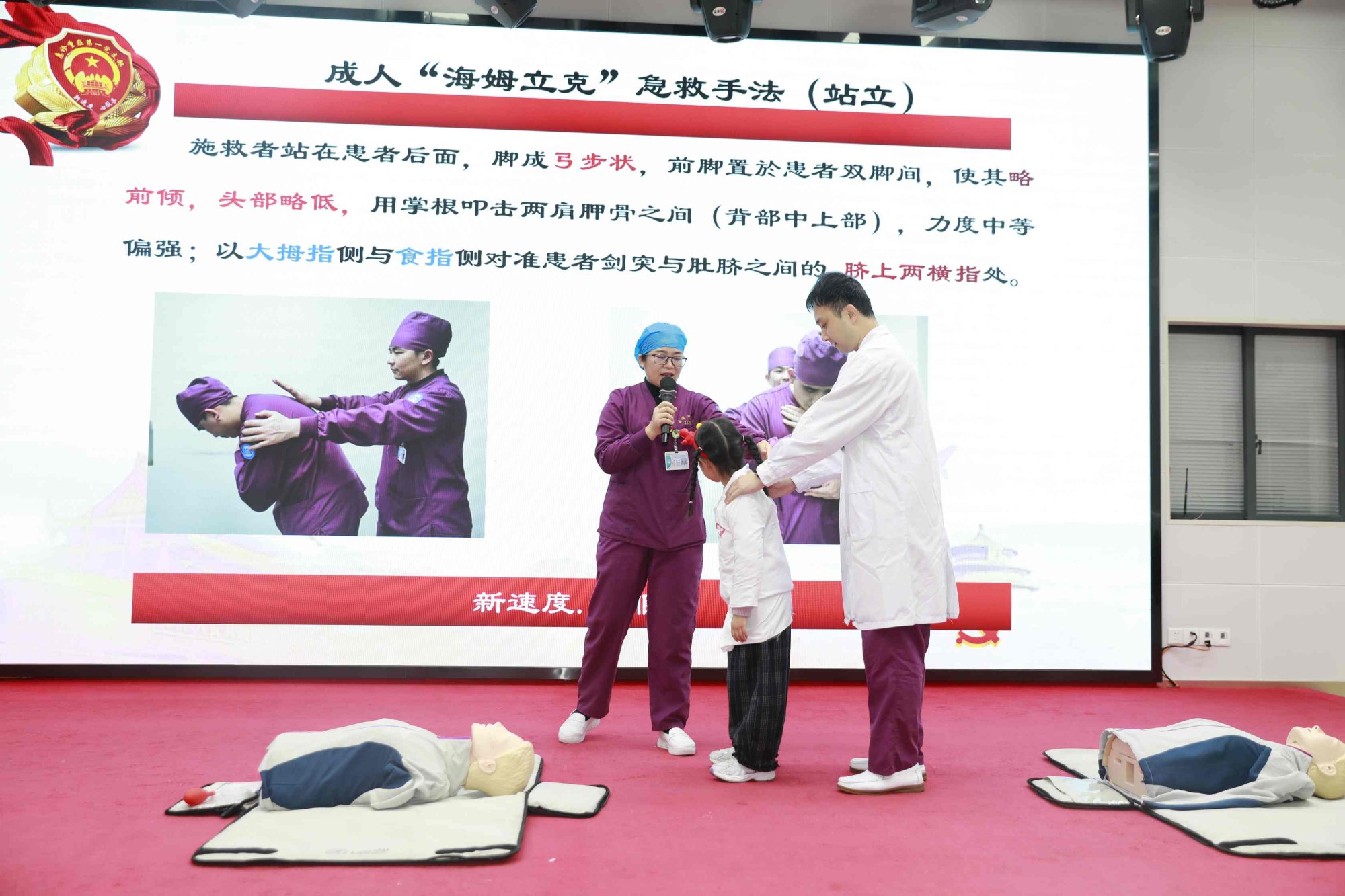 培训现场,来自南溪山医院综合重症医学科医护团队以真实急救案例为切入点,系统讲解心肺复苏、气道异物梗阻处理、海姆立克法等急救技能,并通过演示为志愿者们分解操作要点和注意事项。针对小学生年龄小、理解能力不同的特点,医护人员特意采用动画演示、情景模拟等生动形式,将专业的急救知识转化为孩子们易于接受的生活常识。理论讲解后,医护人员“一对一”指导模拟人胸外按压操作,帮助纠正手势力度、按压频率等细节。小学生志愿者们虽然力气不大,但学得格外认真,活动现场氛围浓烈。