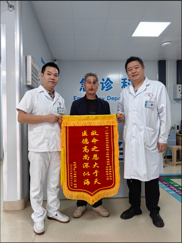 近日,一面印着“救命之恩大于天,医德高尚深似海”的鲜艳锦旗,被送到了广西壮族自治区南溪山医院急诊科医护人员的手中。这面意义非凡的锦旗,不仅饱含着患者及其家属的无尽感激,更见证了急诊科团队与死神赛跑、成功挽救生命的卓越实力。