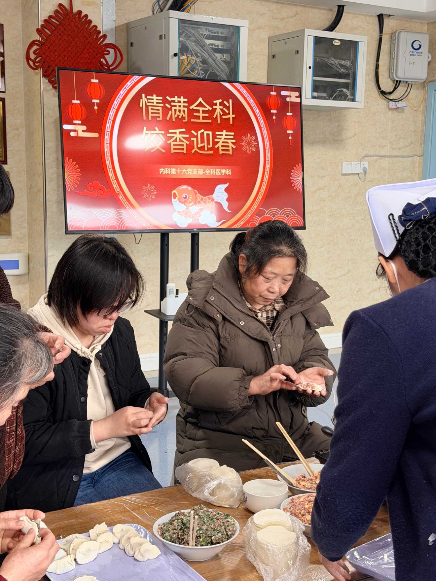 为丰富医患文化生活,拉近医患心灵距离,传递冬日温暖与新春祝福,在年终岁末之际,广西壮族自治区南溪山医院内科第十六党支部全科医学科精心组织了“情暖全科 饺香迎春”主题包饺子联谊活动,邀请科室住院患者、家属与医护人员欢聚一堂,共品饺香、共话温情,度过一段温馨难忘的时光。