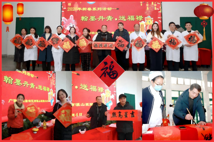 2月4日下午,“翰墨丹青送福禄”迎新春送春联活动在医院大礼堂前厅如约启幕,这已是医院连续第五年以笔墨传情。广西书法家协会会员杨建、永福县书法家协会主席陈德清、桂林师范学院教授王海燕三位名家应邀执笔,与院内书法爱好者一同挥毫。红纸铺展,墨香四溢,一副副春联气韵生动,一个个“福”字各具神采。次日,医院志愿者将这些手写春联送入临床科室,一一张贴在护士站、医生办公室门楣。中国红映亮白大褂,也映亮了一张张开心的笑脸。