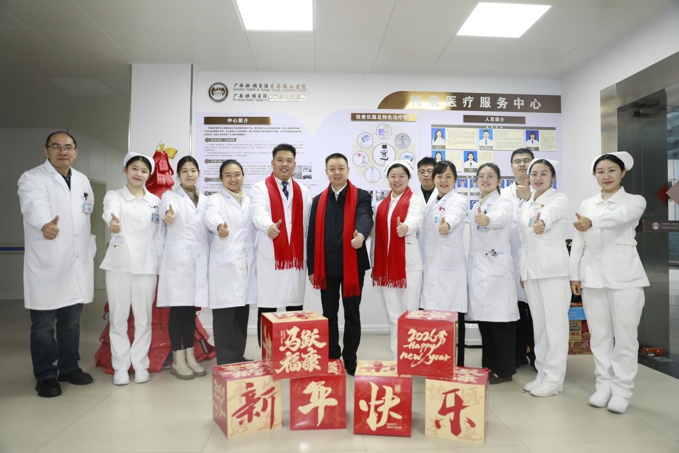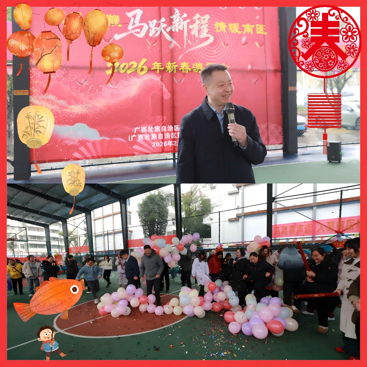 立春时节,万象更新。为营造喜庆祥和的节日氛围,弘扬中华优秀传统文化,表达对全院职工辛勤付出的关怀与感谢,2026年新春前夕,广西壮族自治区南溪山医院党委以“策马扬鞭,情暖南溪”为主题,开展新春游园会、扶贫产品发放、春节职工慰问礼包、值班科室走访慰问及翰墨送福送春联等五项新春慰问系列活动。从文化聚心到帮扶暖心,从礼包贴心到慰问连心,再到送福润心,一份份关爱在浓浓年味中静静流淌。