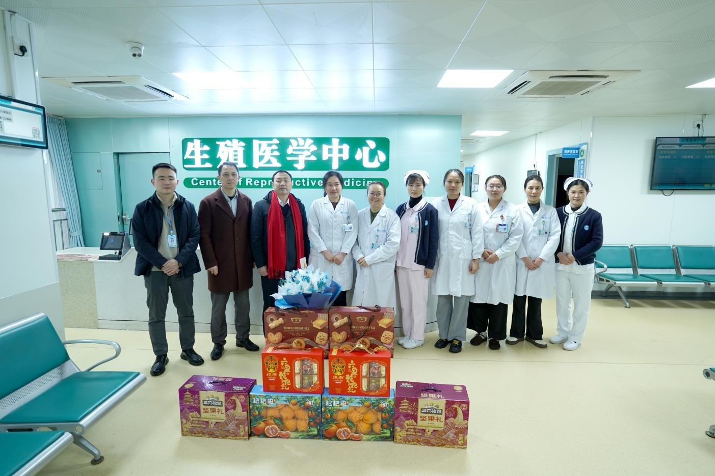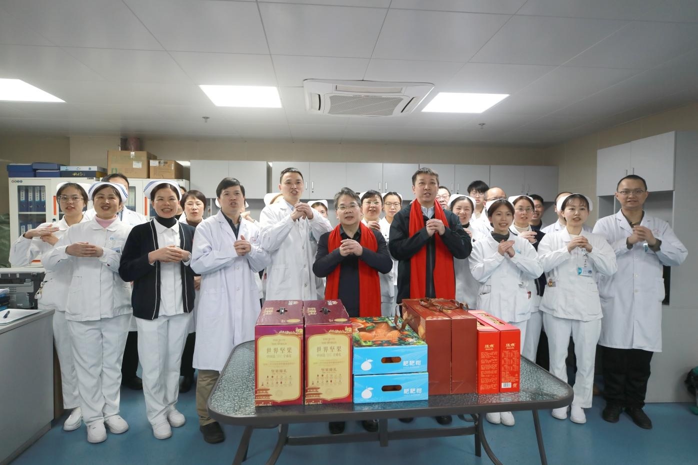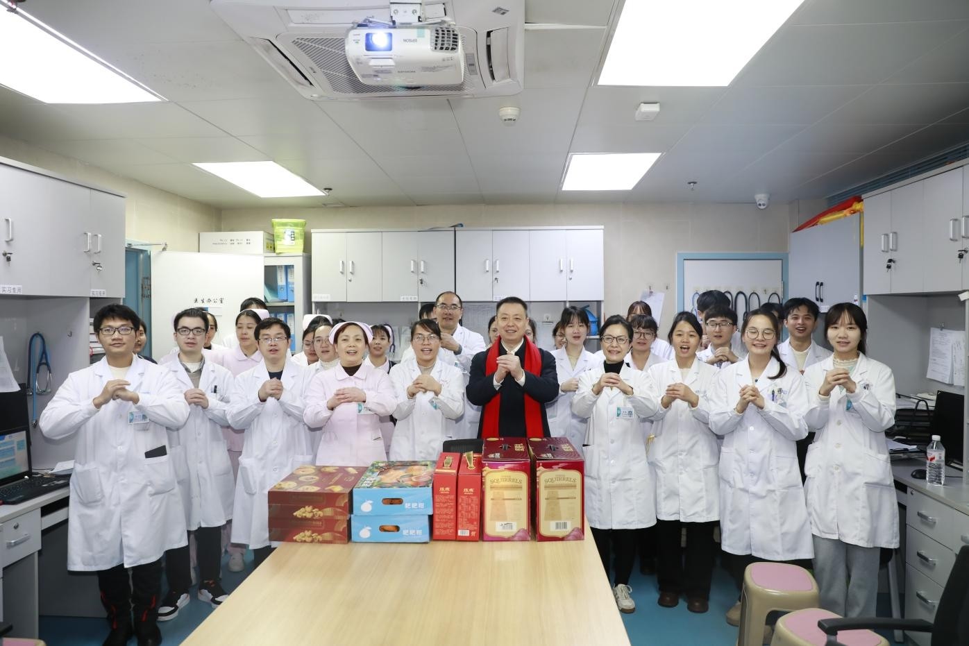 2月13日清晨,大雨滂沱。春节假期前夕的工作日,院领导班子带领工会委员、职能部门负责人,冒雨分四组走进崇信院区、雁山院区的急诊科、ICU、手术室、各专科病房等90余个春节值班科室班组,他们一个不落。“年夜饭怎么安排的?”“轮休能保证吗?”每到一个科室,院领导都要问上几句,细细叮嘱大家注意休息、保重身体。慰问品也一一送到职工手中,每一份都带着家的味道。